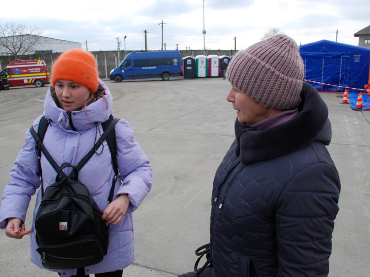 După ce ajung pe mal, refugiații sunt îndrumați spre punctele de vamă, unde se fac formalitățile pentru a putea merge mai departe. Polițiștii de frontieră și jandarmii formează grupuri de câteva persoane explicându-le, în engleză sau ajutați de translatori, la ce ghișee trebuie să ajungă. Până le vine rândul, oamenii pot intra în corturile lungi și încăpătoare, să-și mai tragă sufletul. Cât așteaptă acolo, numeroși voluntari, de la diverse organizații umanitare sau simpli cetățeni veniți să ajute, le oferă ceai cald sau pachete cu alimente. La fel sunt întâmpinați și cei care trec Dunărea cu mașinile personale. Un ceai cald, o vorbă bună, un zâmbet încurajator îi mai liniștește un pic și-i mai face să uite de griji. „Mulțumim, România, mulțumim pentru ajutor!”, își exprimă recunoștința Ana. Are 60 de ani și este etnic român din Orlovka, regiunea Odessa. Muncește de mult timp în străinătate, iar după ce a început războiul s-a întors imediat acasă pentru a-și lua cei doi nepoți, de 9 și 17 ani, ca să-i ducă la adăpost. Până să plece înapoi spre Italia, încă n-au fost bombardamente și explozii în regiunea ei natală, dar se așteaptă la ce-i mai rău. E bucuroasă că și-a scos nepoții din calea războiului, dar e îngrijorată pentru ceilalți membri ai familiei, rămași acasă.