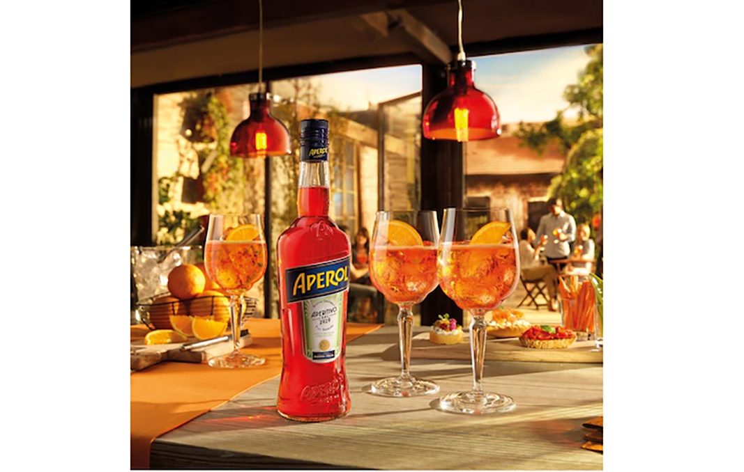 Mod de preparare: într-un pahar de vin umplut pe jumătate cu gheață adăugați 50-60 ml de Aperol și adăugați încă 90-100 ml de prosecco. Ulterior adăugați încă 30 de ml de apă minerală. Amestecați cu o lingură de cocktail și adăugați una-două felii de portocală. Aperol spritz este simplu de preparat, dar foarte delicios.