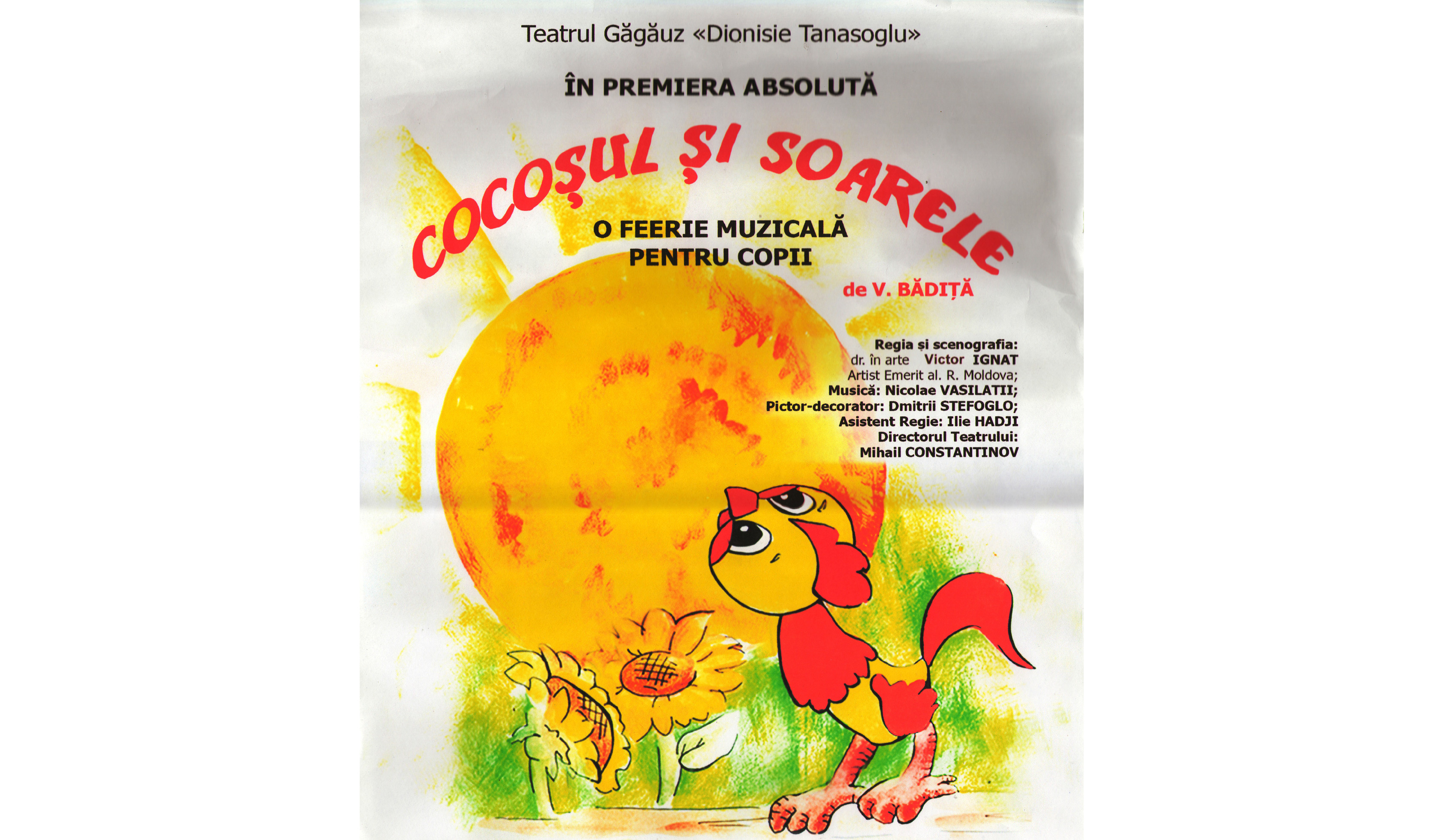 În cadrul programului “Experienţe teatrale”, Teatrul de Păpuşi Brăila organizează o feerie muzicală “Cocoşul şi Soarele”, prezentată de Teatrul Naţional Găgăuz “Dionis Tanasoglu” din oraşul Ceadîr-Lunga, Republica Moldova.