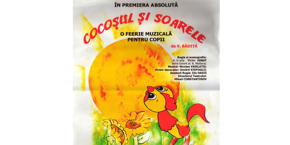 “Cocoşul şi soarele” este un spectacol muzical, extrem de viu şi interactiv, unde spectatorii sunt implicaţi în conflictele dintre personaje... Copiii sunt îndemnaţi de Cocoş să meargă şi să vadă unde doarme Soarele, dar Găina, părăsind cuibarul, îi cere de mâncare şi îl opreşte din drum... Este un spectacol în regia şi scenografia lui Victor M. Ignat, artist emerit al Republicii Moldova.