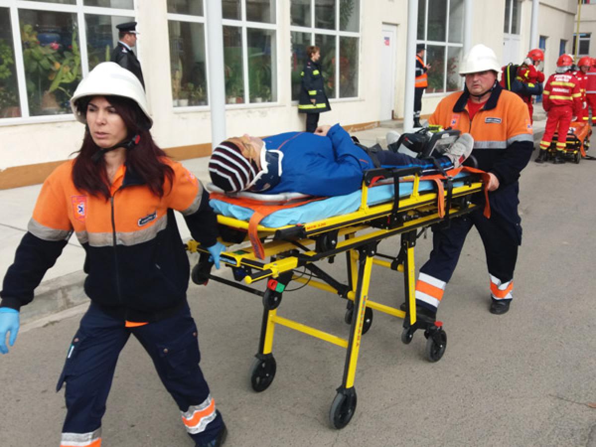• lucrătorii Inspectoratului pentru Situaţii de Urgenţă Brăila şi-au testat, ieri, cunoştinţele şi modul de operare în cazul unei tragedii, cum ar fi un cutremur cu magnitudinea de7,5 grade pe scara • scenariul a fost următorul: la Spitalul Judeţean, zeci de pacienţi au fost răniţi, după ce un plafon s-a prăbuşit, un incendiu a izbucnit pe acoperişul clădirii, iar aparatul de la radiologie s-a defectat, existând pericolul iradierii