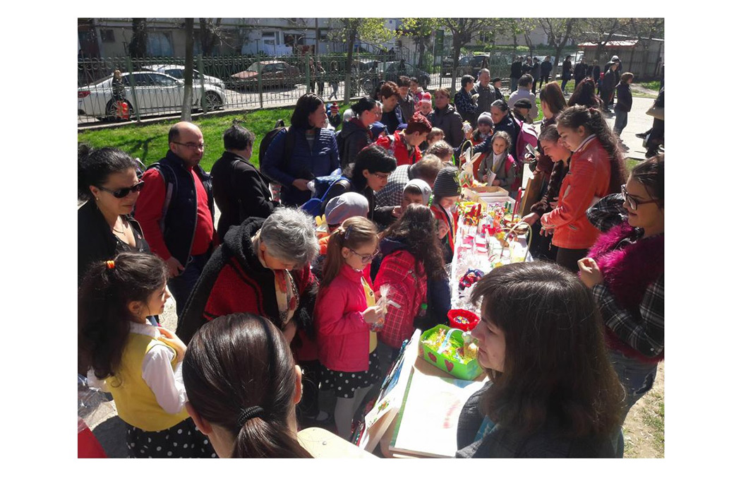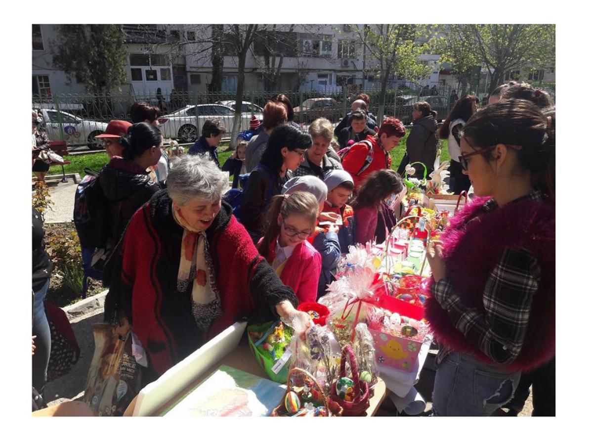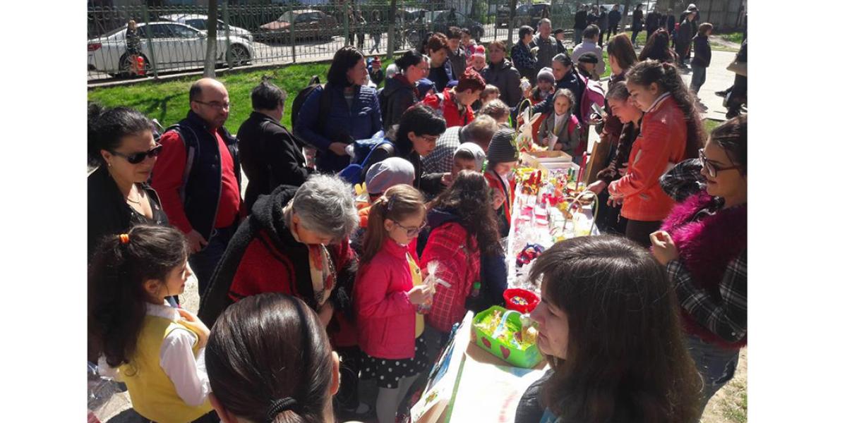 • elevii şi cadrele didactice de la unitatea de învăţământ au organizat un Târg de Paşte, unde au stâns fonduri pentru adolescentul bolnav de cancer • la finalul activităţii s-au adunat aproape 1.300 lei