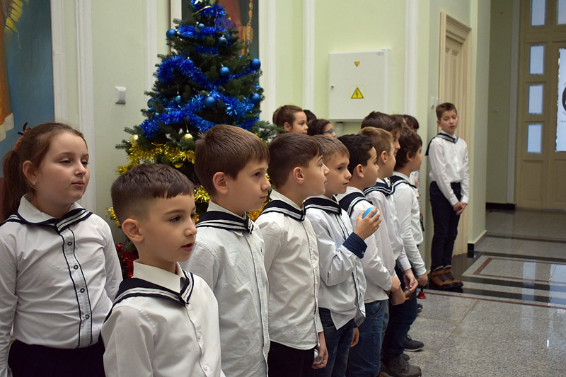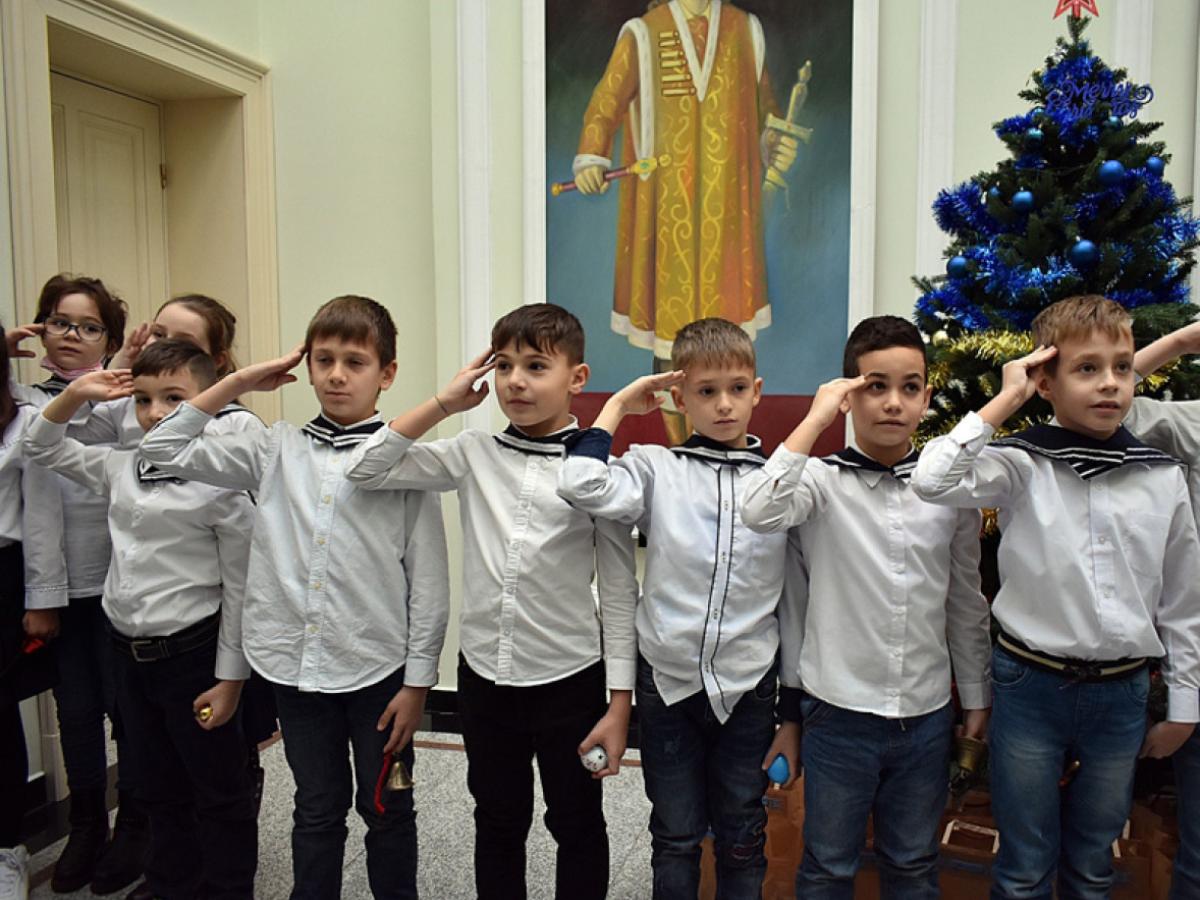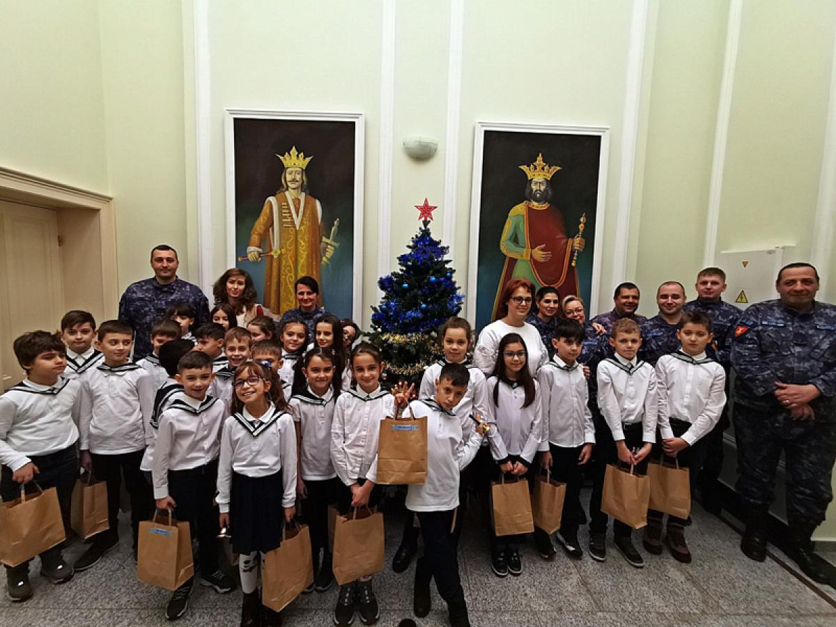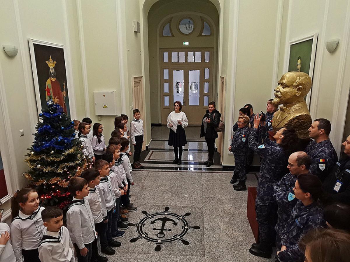 • în ajun de Sfinte Sărbători, Comandamentul Flotilei Fluviale și-a deschis porțile pentru primii colindători • micii mateloți de la Școala „Fănuș Neagu” au interpretat colinde și au fost răsplătiți cu daruri pregătite de marinarii militari