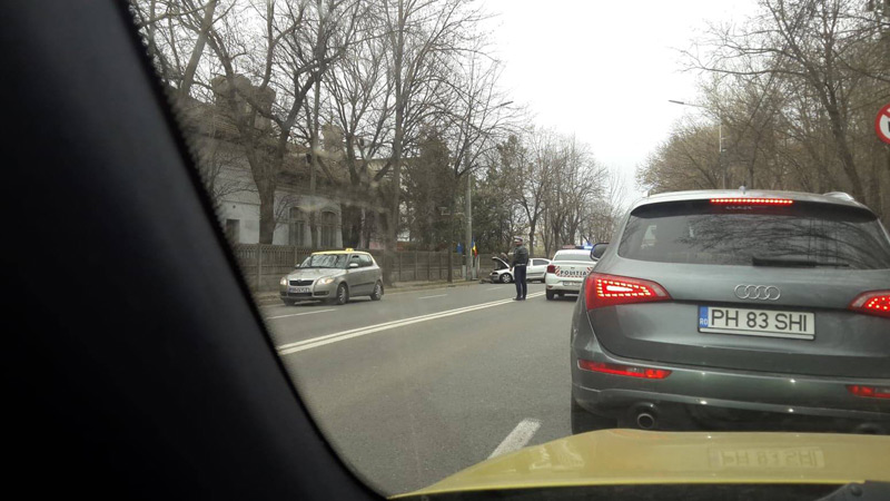 • un şofer bucureştean conducea autoturismul dinspre zona Barieră către ieşirea din municipiu, iar la intersecţia cu strada Hipodrom a lovit un Ford oprit la semafor • în urma impactului, maşina a ricoşat într-un alt auto aflat în faţă • un autoturism a ajuns în stâlp