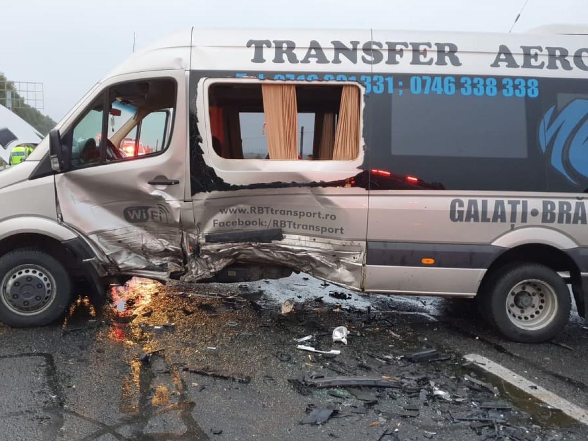 Accident cu trei victime de Dig Brăila – Galaţi. A avut loc o coliziune între un microbuz de transport persoane către Aeroport şi un alt autovehicul.