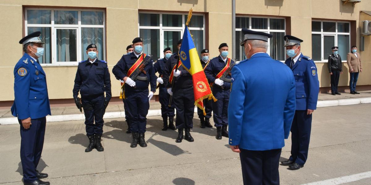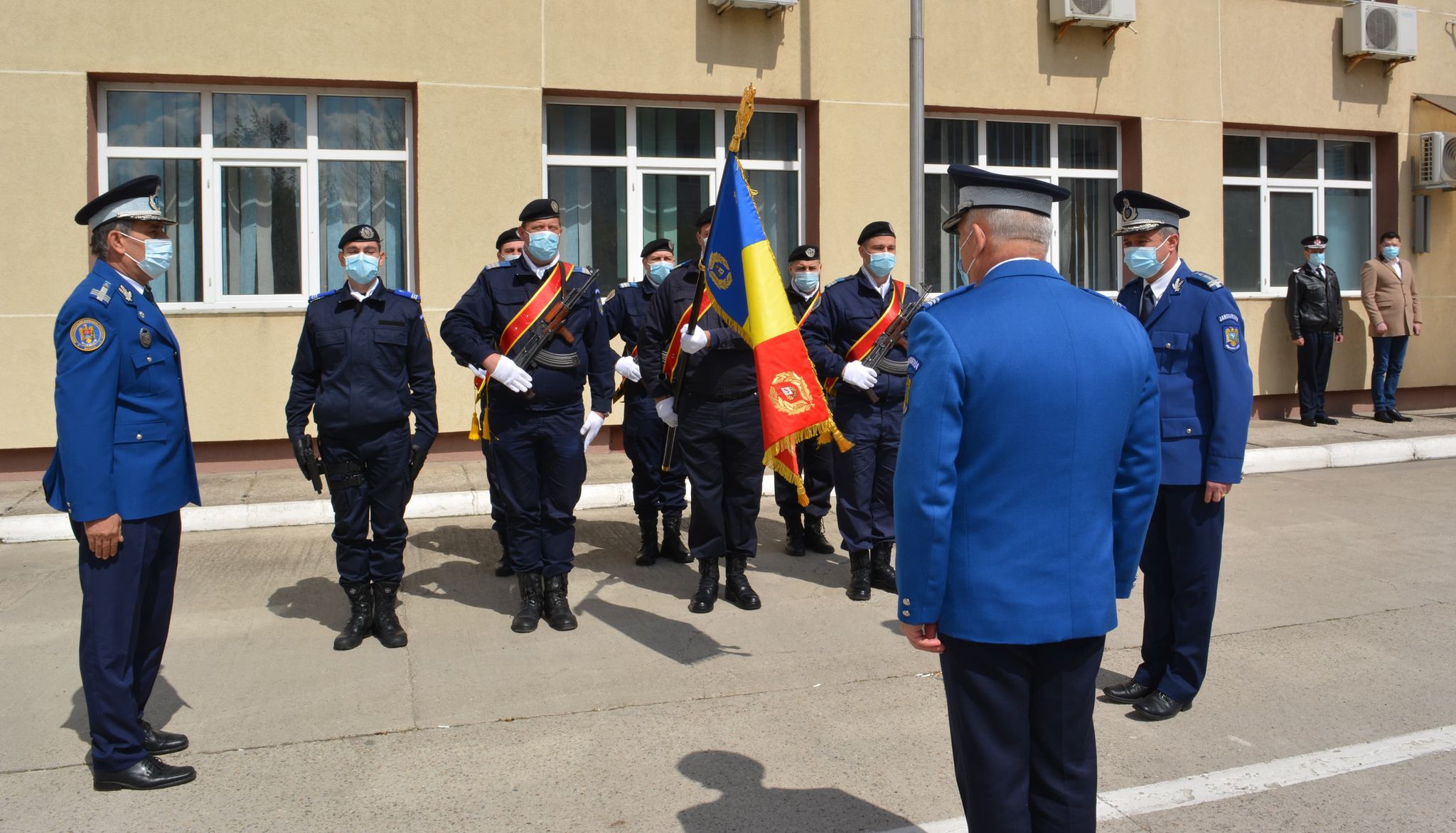 În spiritul tradițiilor militare naționale și în conformitate cu regulile protocolare, colonel Vasile Moţ a predat comanda inspectoratului și drapelul de luptă către locotenent colonel Nicolae Gabriel Paraschiv, împuternicit prim-adjunct al inspectorului șef.