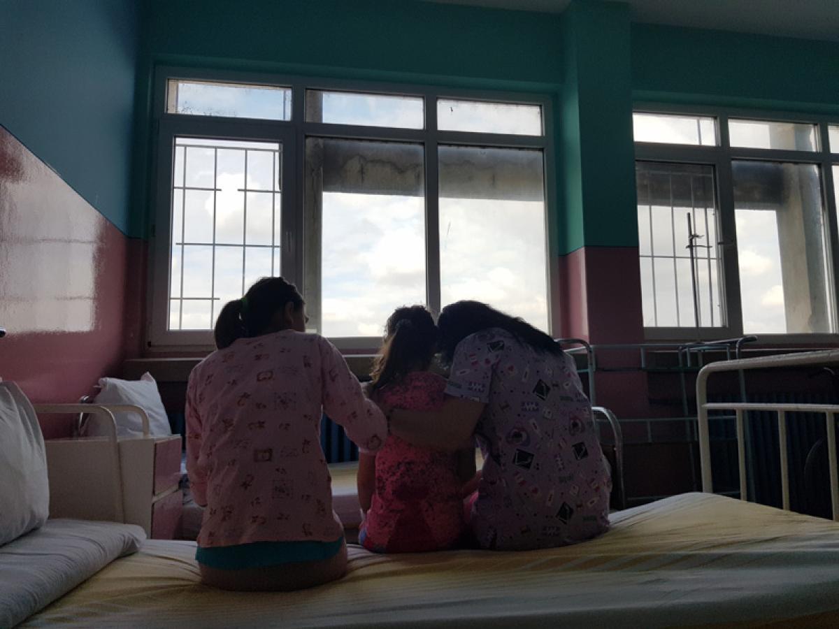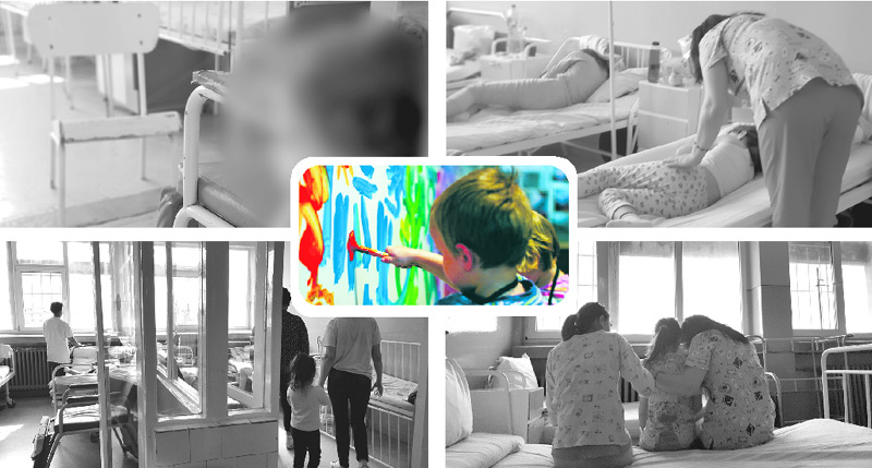Saloane sufocante, ticsite cu paturi şi pătuţuri, în care micii pacienţi sunt obligaţi să-şi petreacă întreaga zi, pentru a evita contactul cu podeaua rece din ciment, complet neprietenoasă. Cămăruţe de câţiva metri pătraţi, în care părinţi, copii, medici ori asistente abia se strecoară printre bagaje, scaune vechi, noptiere, înghesuite de-a valma. Plus paturi. Din nou paturi... Multe, mai mici sau mai mari, din lemn sau din fier, mai noi ori vechi de-o vârstă cu spitalul şi cu aparatura folosită pentru îngrijirea bolnavilor, acoperite cu saltele ponosite şi lenjerii ce au văzut şi zile mai bune. Flise vechi şi crăpate, dulapuri, mai scunde sau mai înalte, supraîncărcate, ce par să cedeze sub greutatea lucrurilor. Un aer irespirabil ce se loveşte strident de nişte pereţi ce par imenşi sub albul copleşitor. Totul e vechi şi tăcut, un tablou dezolant, dominat de razele nemiloase ale unui soare de-a dreptul stresant, care încinge tot – oameni şi obiecte. Pe tot etajul, o singură fereastră are stor, în rest, în toate celelalte saloane, cu greu poţi găsi un loc ferit de lumina mult prea puternică, deranjantă, lăsată parcă special să stăpânească pentru a evidenţia contrastul. Un contrast emoţionant între ochişorii curioşi, ce ne priveau atât de inocent din pătuţuri, şi neputinţa din ochii celor mari care-i supravegheau, fie că sunt părinţi, medici, infirmieri sau asistenţi.