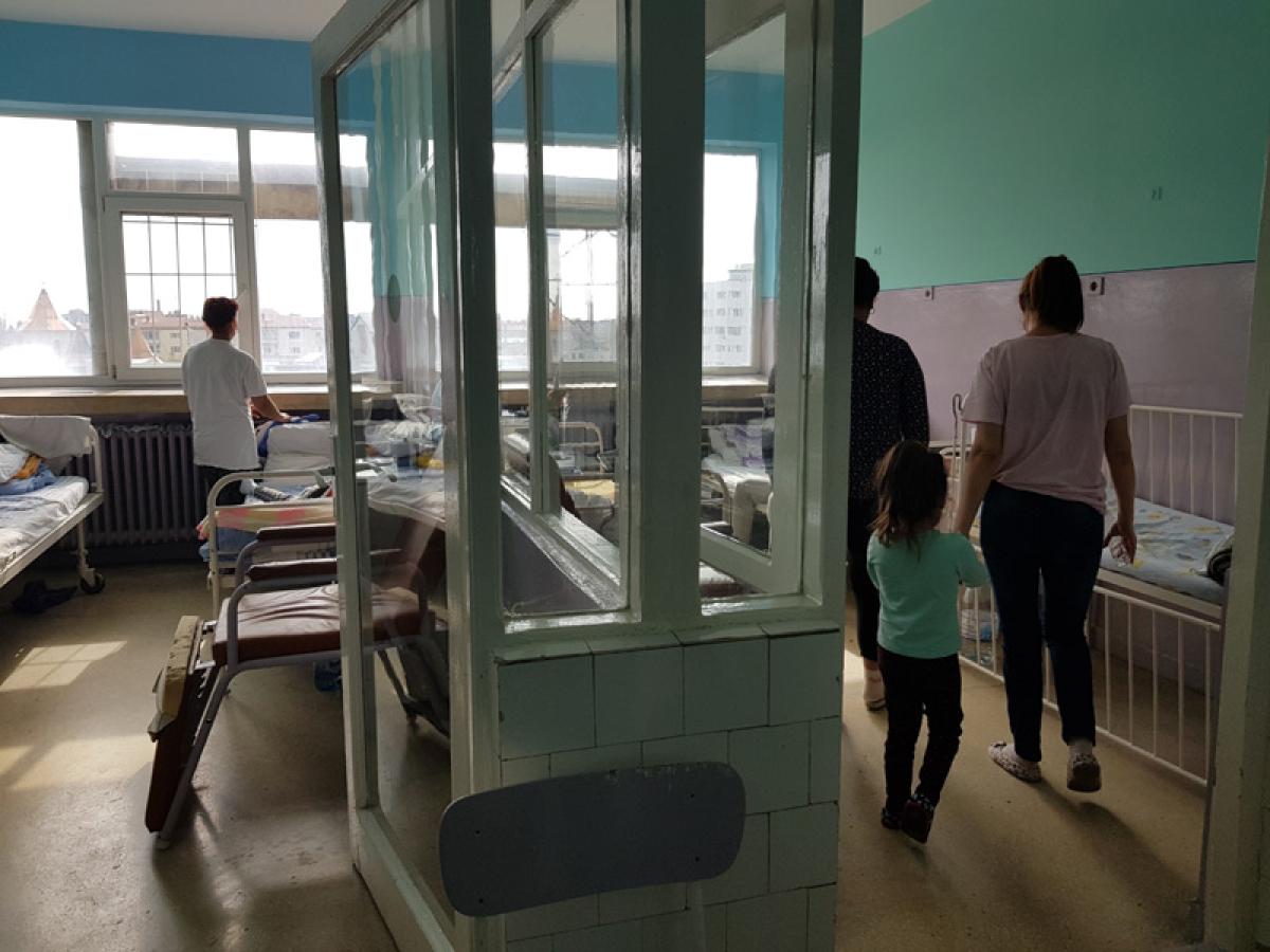 Secţia este împărţită în două compartimente: boli respiratorii şi boli digestive. La rândul lor, cele 17 saloane sunt împărţite pe categorii de vârste - pentru sugari, preşcolari şi adolescenţi, şi pe sexe - fete şi băieţi. Cu câteva excepţii, saloanele sunt mici, pereţii sunt anoşti, arătându-şi parcă “vârsta”, paturile mici şi mari sunt înghesuite în câţiva metri pătraţi, mobilierul este vechi şi lista poate continua. Fiecare astfel de salon este un loc trist, fără culoare, fără jucării, fără emoţie. Poate dacă ar avea un covoraş, o măsuţă cu scăunele, o cărticică de colorat şi câteva cuburi de lego şederea celor mici în spital ar fi mult mai plăcută. Şi dacă ar mai avea şi un ecran pe care să vadă personajele preferate din desenele animate, nu ar mai număra orele până când vor pleca acasă. Dar stai! Nu au ce număra pentru că în saloane nu există nici măcar un ceas pe perete.