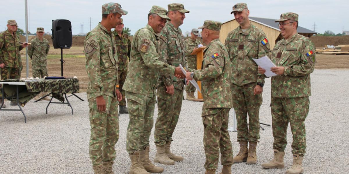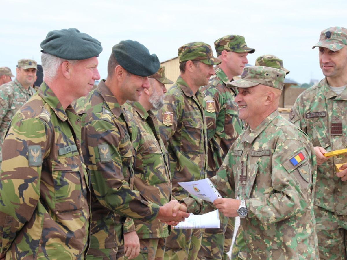 • este vorba de geniștii care au amenajat, în premieră, Poligonul multinațional de instruire în arma geniu, de la Brăila • la ceremonie, a fost prezent lt. col. Harold Dubbelhuis, comandantul Batalionului 101 Geniu din Țările de Jos, precum și camarazii geniștilor brăileni