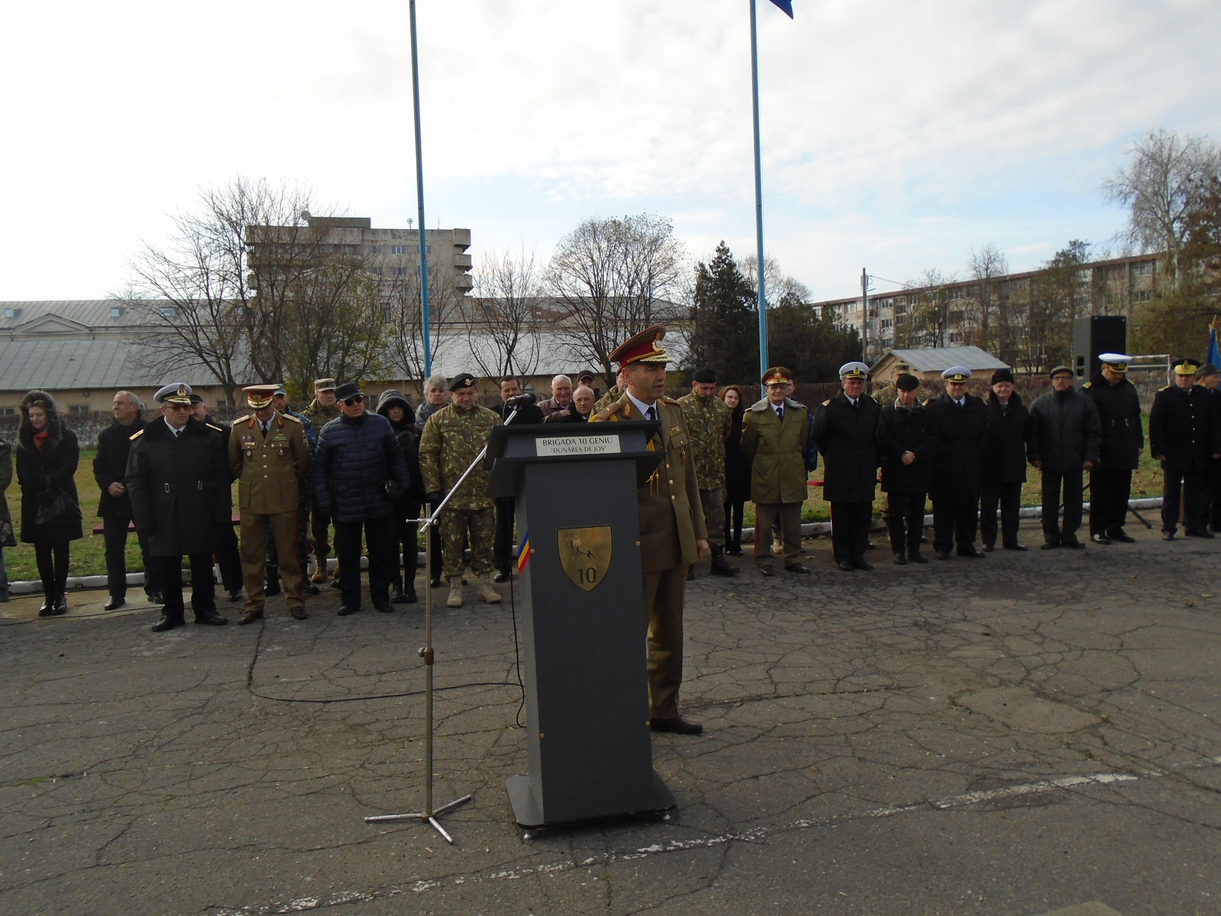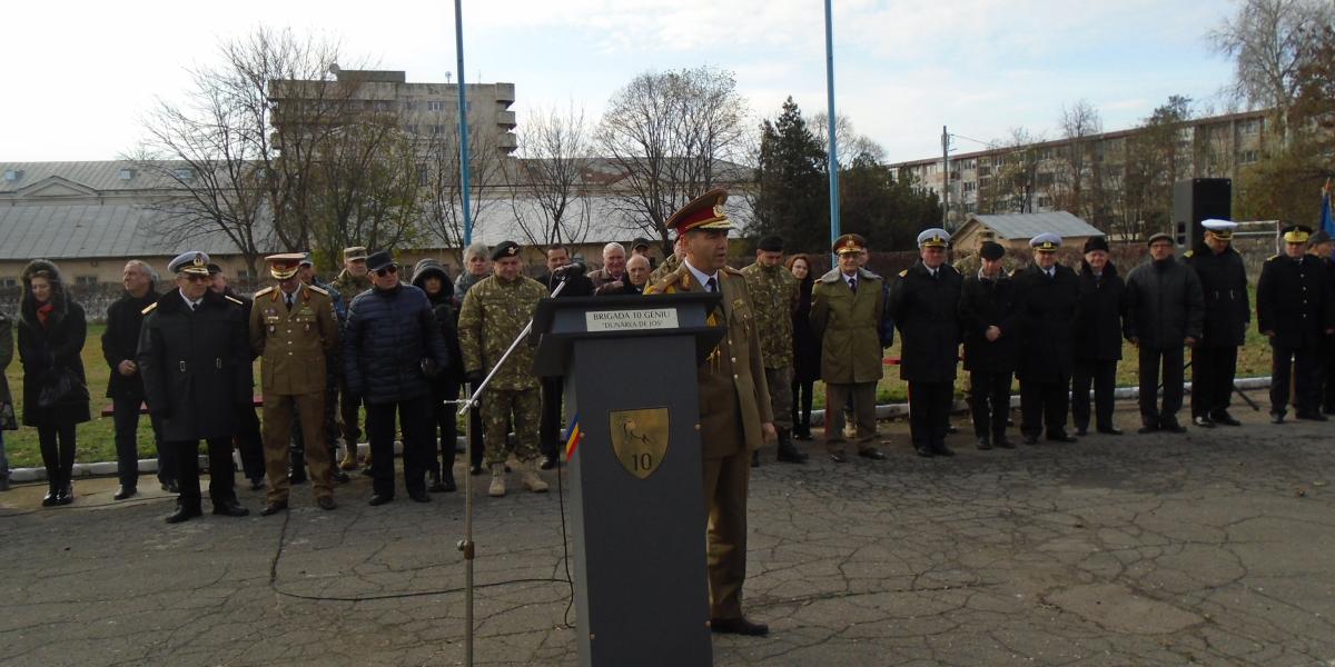 Au rostit scurte alocuţiuni generalul de brigadă Marian Mazilu, generalul Tomescu, precum şi noul general de brigadă Vasile Ionescu. Vădit emoţionat, comandantul Brigăzii 10 Geniu “Dunărea de Jos” Brăila a spus, printre altele: “Acest an, 2019, coincide cu împlinirea a 40 de ani de când am păşit pe porţile Liceului Militar din Breaza. Tot anul acesta, am sărbătorit 15 ani de la intrarea României în Alianţa Nord-Atlantică. Este şi un moment de bilanţ. Această înaintare în grad mă onorează, acum, la împlinirea a 40 de ani de viaţă militară”.