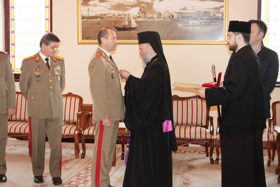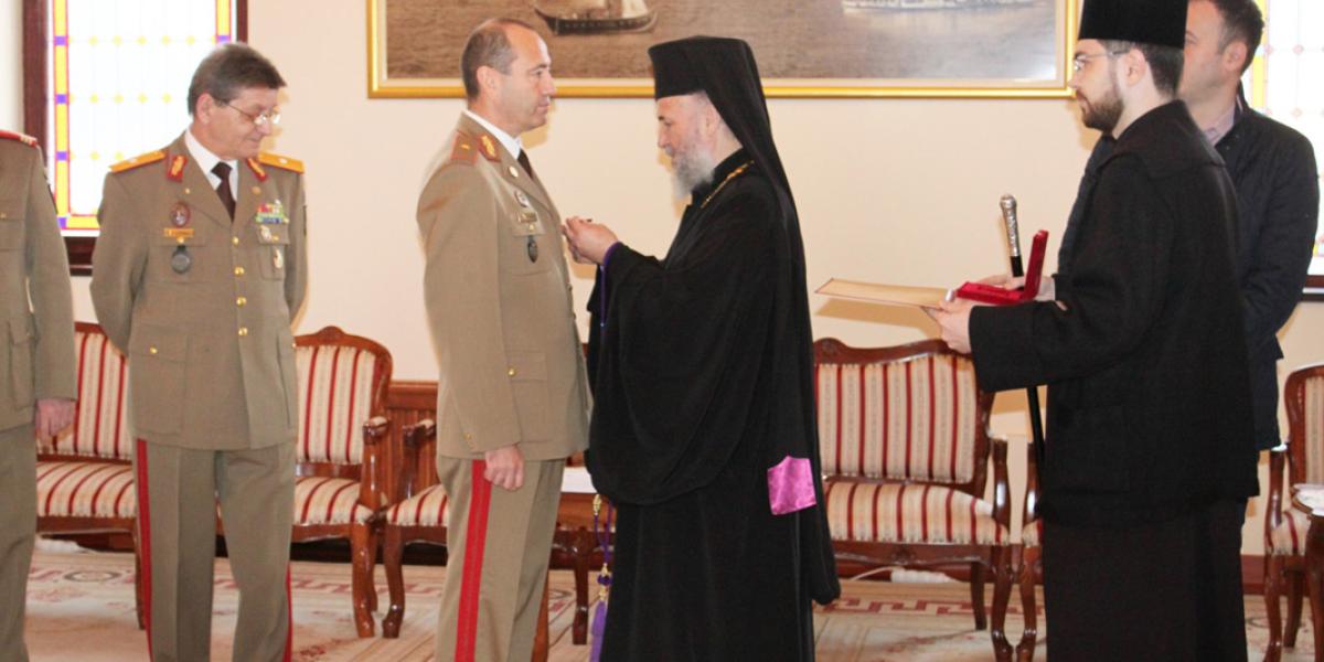• în Ajunul Crăciunului, corul Garnizoanei Brăila a interpretat colinde la reşedinţa arhiepiscopală de la Galaţi • cu acest prilej, generalul de brigadă Vasile Ionescu, comandantul Garnizoanei Brăila, a primit Ordinul eparhial “Vrednicia Andreiană” din partea Părintelui Arhiepiscop Casian