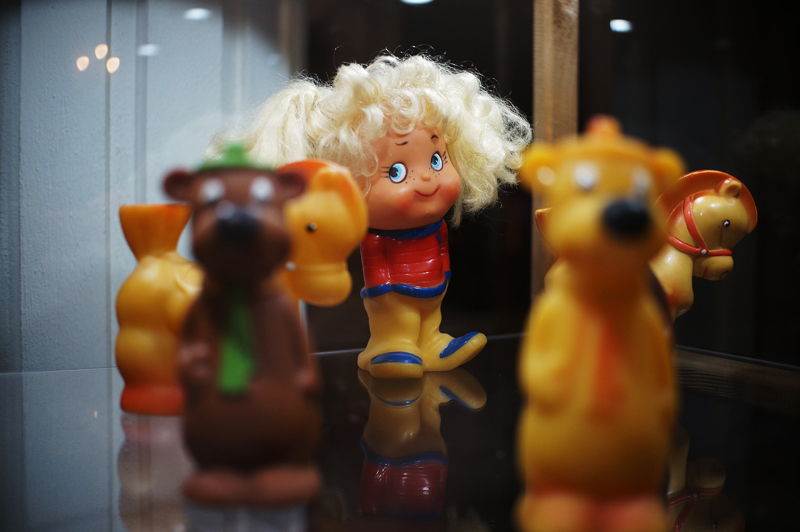 La o altă vitrină, un brăilean venit împreună cu familia ne spune că ”Mi s-a părut incredibil că unele jucării mai aveau piuitoarea de bronz. Exact ca în anii ’70”.