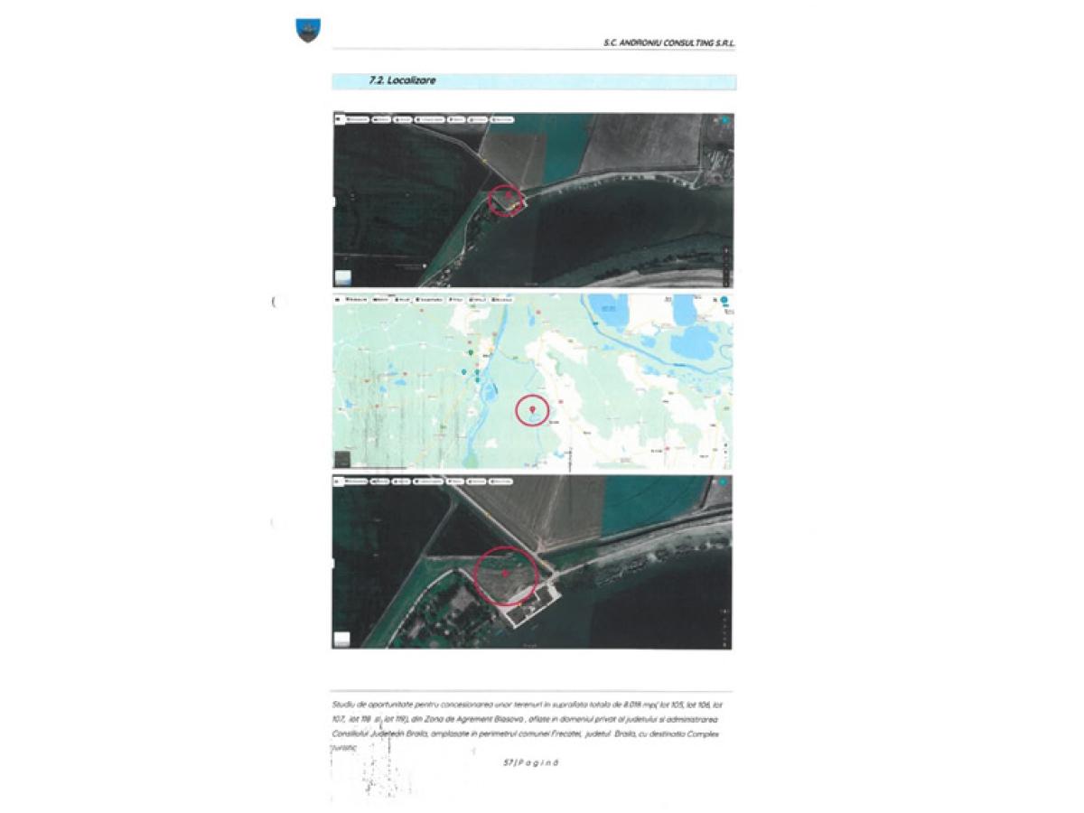 * aceasta este intenția omului de afaceri brăilean Aurel Gropeneanu, care a solicitat CJ Brăila să scoată la licitație 8.000 mp de teren din perimetrul Comunei Frecăței, pentru a dezvolta zona * administrația județeană a fost de acord, consilierii județeni aprobând, în ședința ordinară de la finele lunii trecute, un studiu de oportunitate pentru concesionarea acestor cinci loturi de teren, în vedere dezvoltării unui complex turistic * prețul de la care va porni licitația este 13.630 euro (1,7 euro/mp), iar concesiunea se va face pe 30 de ani cu posibilitate de prelungire * potrivit unei adrese transmise către CJ Brăila, SC Gropeneanu Com SRL s-a arătat de acord cu condițiile solicitate de conducerea județului și, pe lângă realizarea unui Plan Urbanistic Zonal, printre investițiile la care se va înhăma dacă va câștiga licitația se numără și construirea unei stații de tratare și filtrare a apei, care va deservi toată zona de agrement Blasova * în ședința ordinară de astăzi, este prins pe ordinea de zi un proiect privind concesionarea acestui teren * va urma o licitație la care rămâne de văzut ce firme vor mai participa, în afară de cea a lui Gropeneanu