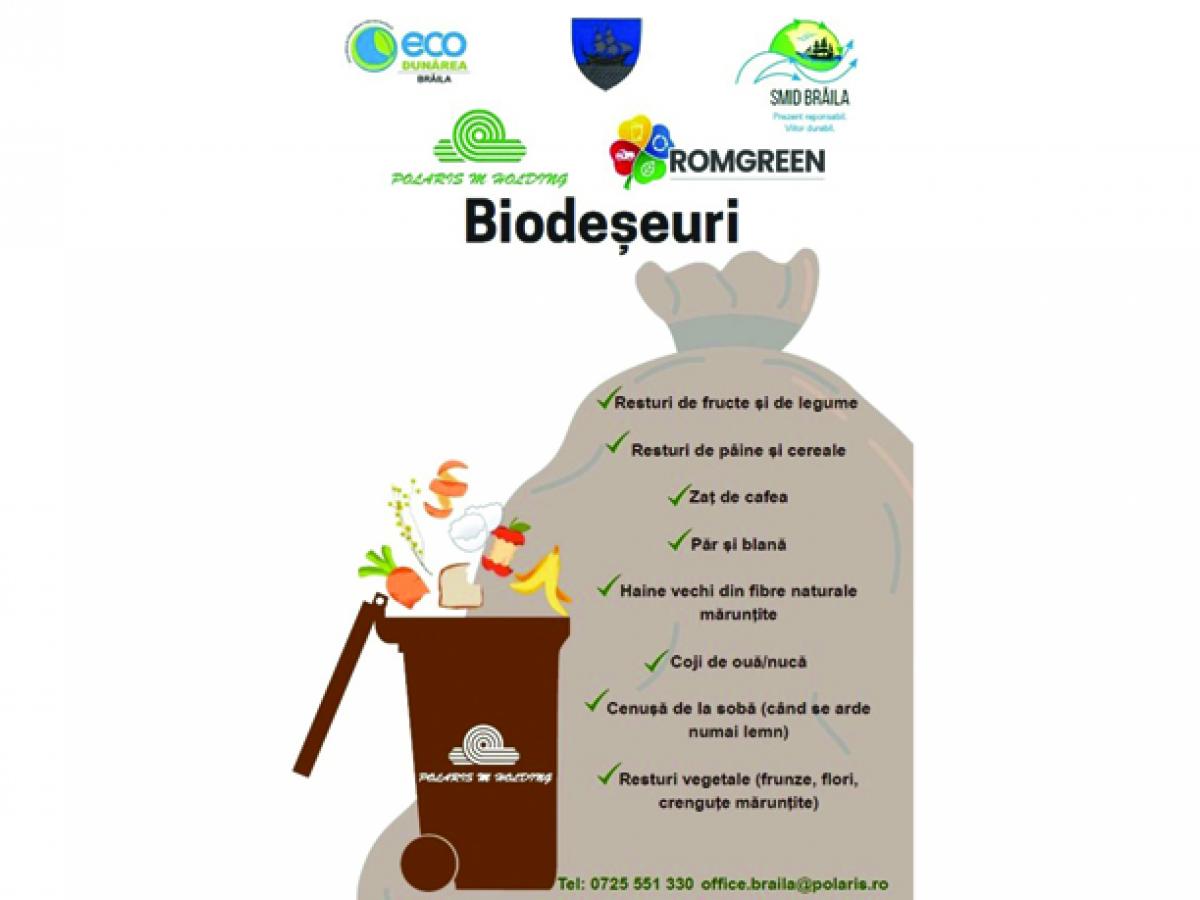 În pubela maro (biodeșeuri) se vor colecta următoarele tipuri de deșeuri: