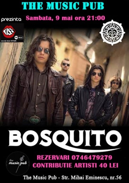 Formaţia românească Bosquito va concerta la Brăila în acest weekend. Braşovenii vor urca pe scena The Music Pub (Strada Mihai Eminescu nr. 56), sâmbătă, 9 mai, pentru un show de zile mari. Evenimentul este programat să înceapă la ora 21:00, iar preţul unui bilet (contribuţie pentru artişti) este de doar 40 de lei. Cei interesaţi de concert pot face rezervări la numărul de telefon: 0746/479.279. Bosquito este o formaţie românească fondată de Radu Almăşan. Trupa combină stilul rock cu cel latino şi cu o gamă largă de alte influenţe precum muzică ţigănească, balcanică, până la elemente simfonice. Între anii 2002 - 2005 trupa s-a bucurat de un real succes, lansând o serie de melodii care au ajuns pe prima poziţie a topurilor din România. Deşi bazele formaţiei au fost puse la sfârşitul anului 1999, membrii acesteia au adoptat ca dată oficială de înfiinţare ziua de 14 februarie 2000. Bosquito înseamnă în prezent: Radu Almăşan (voce, chitară acustică, chitară electrică, muzicuţă), Ciprian Pascal (voce, chitară acustică, chitară electrică, mandolină), Austin Jesse Mitchell (bass, synth, keys), Dorin Ţapu (tobe, chitară acustică, chitară electrică, percuţie).