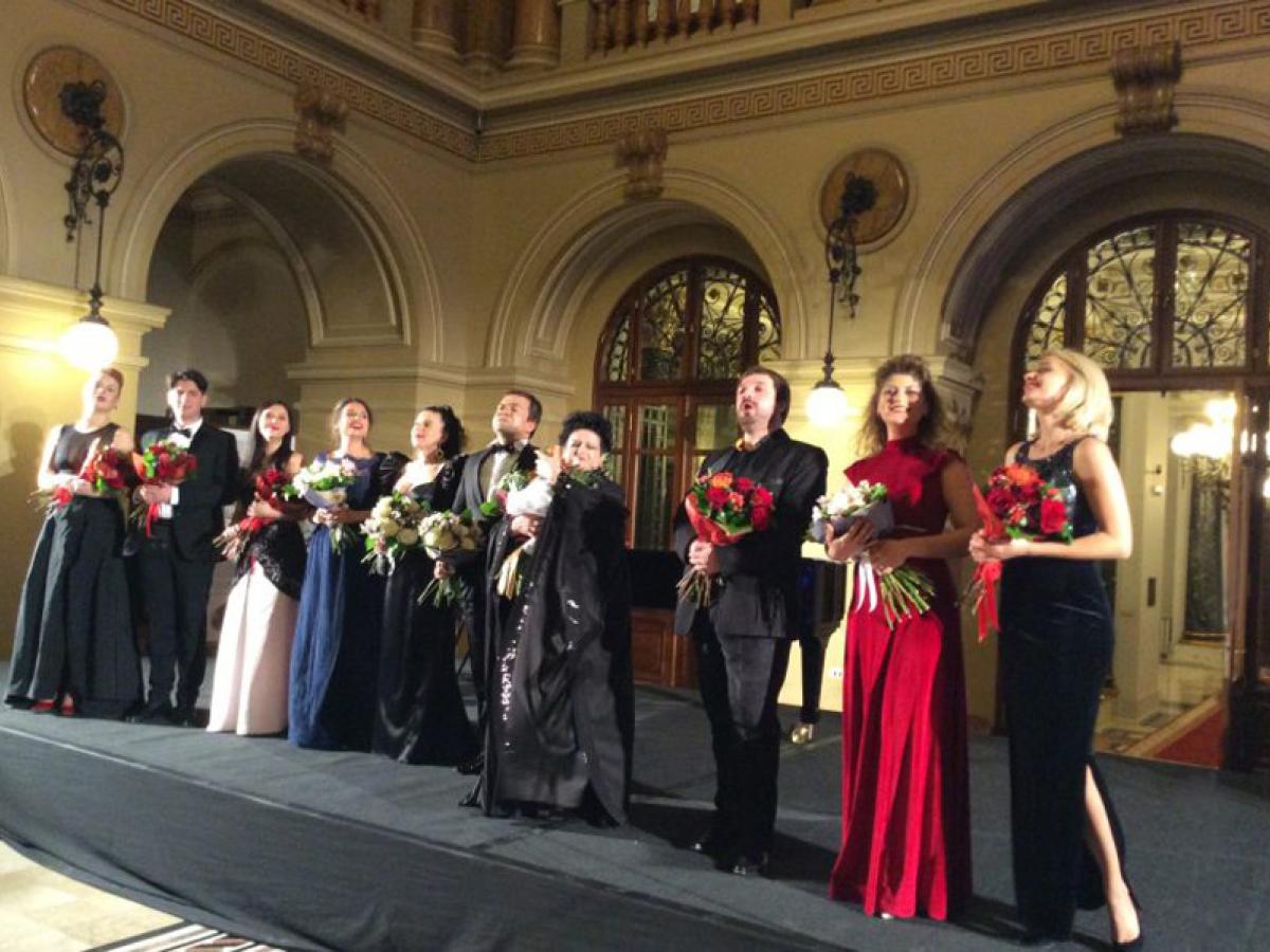 După faimoasele arii din repertoriul liric universal, Concertul s-a încheiat cu minunate colinde româneşti şi, în aplauzele entuziaste ale celor care au trăit momente de neuitat, alături de Mariana Nicolesco, Guvernatorul Mugur Isărescu i-a felicitat pe artiştii care au încântat publicul.