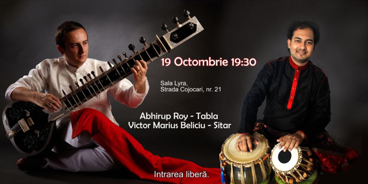 Centrul Cultural Indian Tansen ne propune un spectacol inedit de muzică clasică indiană, susţinut de Victor Marius Beliciu – sitar şi Abhirup Roy – tabla.