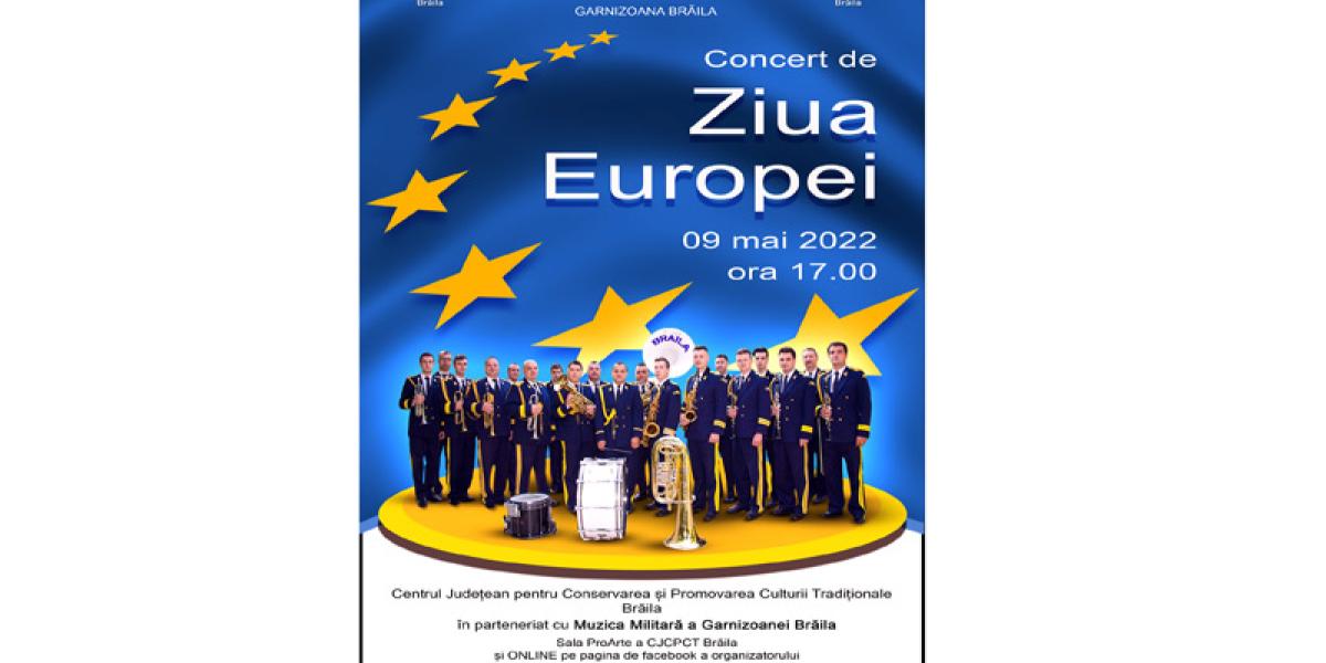Evenimentul organizat de Centrul Județean pentru Conservarea și Promovarea Culturii Tradiționale, cu sprijinul Muzicii Militare a Garnizoanei Brăila (sub conducerea muzicală a lt. Raul Ionut Badale), aduce în atenția oaspeților un repertoriu specific, omagial, ce promovează valorile, tradițiile și cultura militară. Concertul de Ziua Europei se va desfășura în Sala ProArte a Centrului Județean pentru Conservarea și Promovarea Culturii Tradiționale Brăila și va fi transmis live pe pagina de Facebook a organizatorului, respectiv Centrul.de.Creatie.Braila.