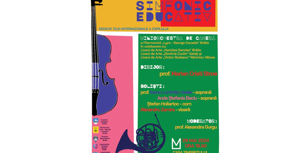 Astăzi, 29 iunie, de la ora 18.30, la Casa Tineretului, are loc Concertul simfonic educativ dedicat Zilei Internaționale a Copilului, organizat de Filarmonica „Lyra - George Cavadia”, în colaborare cu Consiliul Județean Brăila, Liceul de Arte „Hariclea Darclee”, Primăria Municipiului Brăila, Liceul de Arte „Dimitrie Cuclin” Galați și Liceul de Arte „Victor Giuleanu” Râmnicu Vâlcea. Intrarea la concert este liberă.