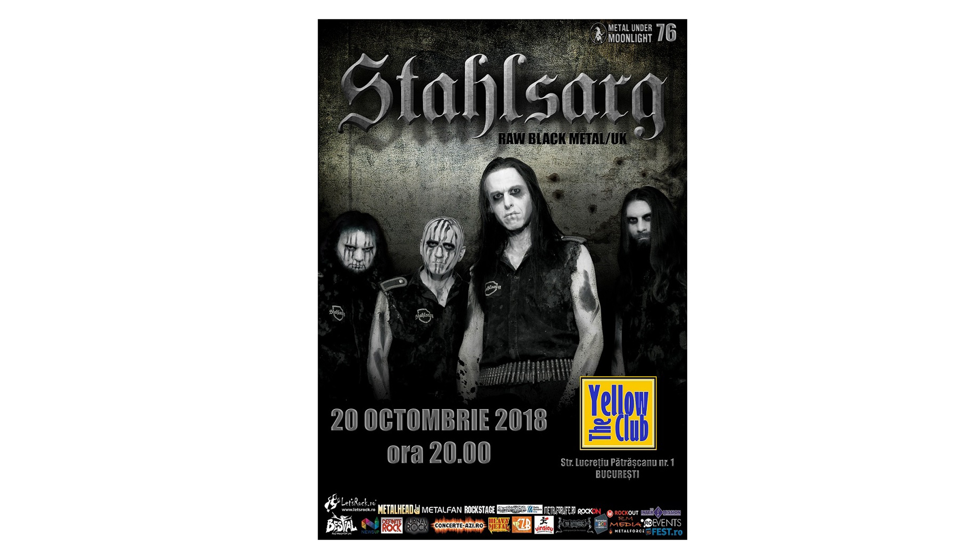 “Un concert exclusiv pentru cei cu inima tare, dedicaţi 100% celor mai dure sonorităţi black metal! Formată în 2013 de doi membri care au părăsit grupul Eastern Front, Stahlsarg a avut în primii cinci ani de activitate o ascensiune spectaculoasă, materializată în două albume de studio, numeroase turnee şi concerte alături de nume mari din zona metalului extrem (Mayhem, Endstille, Inquisition, SepticFlesh, Sarkom, Excruciate 666), precum şi participări la festivaluri de top (Bloodstock 2014, No Compromise Metal 2014, Inferno 2016, Kings of Black Metal 2016, Incineration 2018, Ragnarok 2018)”, se arată într-un comunicat emis de organizatori.