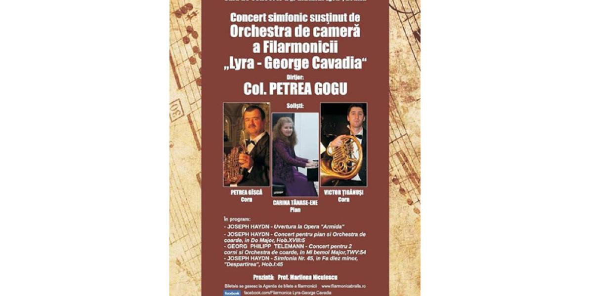 Miercuri, 20 Februarie 2019, cu începere de la ora 18:00, în Sala de Concerte a Palatului “Lyra” Brăila, se va desfăşura “Concertul simfonic” susţinut de Orchestra de Cameră a filarmonicii dirijată de colonel Petrea Gogu.
