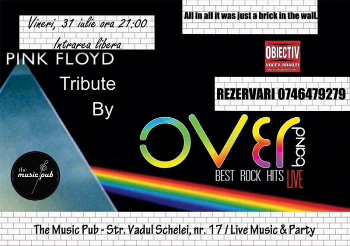 Over Band le-a pregătit un concert special rockerilor brăileni. Este vorba despre un show tribut Pink Floyd, ce va avea loc, vineri, la ora 21:00, pe scena The Music Pub - La Terrasse (Str. Vadul Schelei, nr. 17). Mai exact, concertul grupului din Galaţi va avea două părţi: una dedicată cover-urilor legendarei trupe din Anglia, iar cea de-a doua, celor mai dansabile hituri rock, pop, rockn roll şi dance. Over Band este formată din 5 muzicieni experimentaţi, pe care i-a unit pasiunea pentru muzică bună - Roxana (voce) Victor Udreş (chitară şi voce), Dragoş Pisăroc (clape şi backing vocals), Ioan Daniel (chitară bass şi backing vocals) şi Sorin Gheorghiu (tobe). Aceştia au un repertoriu vast de cover-uri care acoperă genuri precum dance, pop, rock şi blues. Originile trupei datează din 2005, însă după câteva schimbări de componenţă şi nume, din septembrie 2006 se numesc "Over". De atunci, au cântat în diverse cluburi de profil din ţară şi străinătate la diferite ocazii festive, concerte aniversare, bifând şi câteva festivaluri de renume. De reţinut că la concertul Over Band din 31 iulie intrarea este liberă. Cei interesaţi de eveniment pot face rezervări la numărul 0746479279.