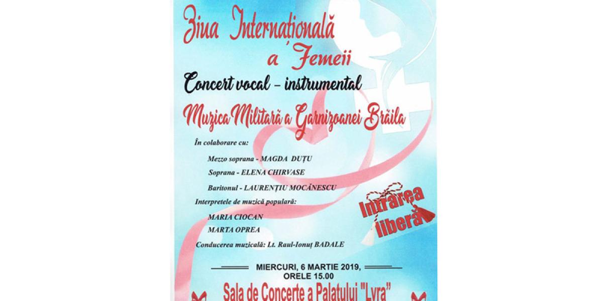 Sala de concerte a Palatului LYRA găzduieşte astăzi, 6 martie, un concert vocal-instrumental susţinut de Muzica Militară a Garnizoanei Brăila, dedicat Zilei Internaţionale a Femeii. Evenimentul este organizat de Ministerul Apărării Naţionale Brigada 10 Geniu “Dunărea de Jos-Brăila şi Centrul Judeţean pentru Conservarea şi Promovarea Culturii Tradiţionale în colaborare cu mezzo soprana Magda Duţu, soprana Elena Chirvase şi baritonul Laurenţiu Mocănescu. Pe scena Palatului LYRA vor cânta şi interpretele de muzică populară Maria Ciocan şi Marta Oprea, iar conducerea muzicală va fi realizată de lt. Raul Ionuţ Balade.