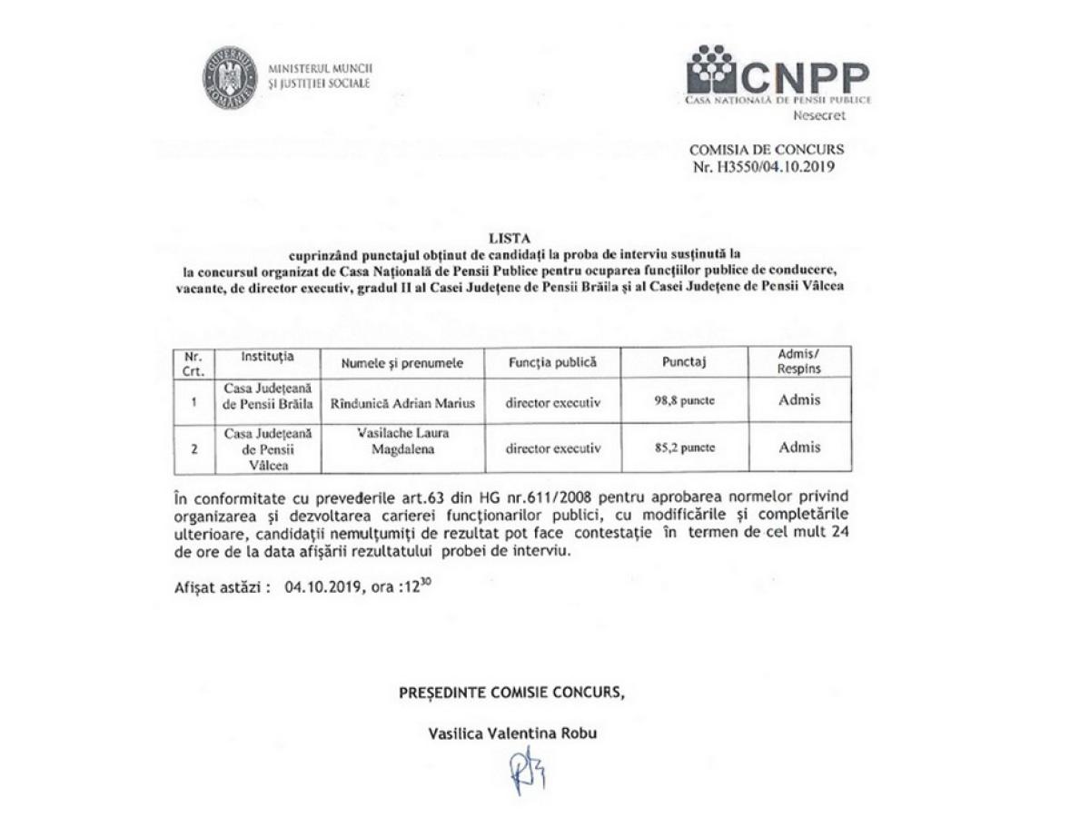 Secretarul de stat în cadrul Ministerului Muncii, PSD-istul brăilean Adrian Rîndunică şi-a asigurat un loc “călduţ” în eventualitatea în care Guvernul Viorica Dăncilă va fi dărâmat în urma moţiunii de cenzură, iar poziţia sa ar deveni nesigură. Este vorba despre postul de director la Casa Judeţeană de Pensii Brăila, unde Rîndunică a fost declarat “Admis” în urma unui concurs desfăşurat pe 1 octombrie. Anunţul privind punctajul obţinut de Rîndunică la proba interviu susţinută la acest concurs a fost publicat pe 4 octombrie pe site-ul Casei Naţionale de Pensii Publice (CNPP), brăileanul fiind declarat admis cu 98,8 puncte. De altfel, după cum ne-a precizat personal, la proba scrisă a obţinut 97 de puncte. Interesant este că Rîndunică a precizat că intenţionează să se autosuspende şi să îşi continue activitatea ca secretar de stat în cadrul Ministerului Muncii, atât cât se va mai putea. Precizăm că secretarii de stat nu sunt schimbaţi automat dacă Executivul pică, acest lucru depinzând de decizia următorilor miniştri.
