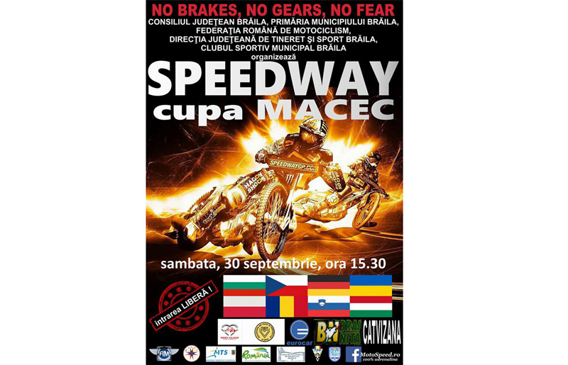Sâmbătă, pe pista stadionului Municipal din Brăila va avea loc o etapă a Cupei MACEC la dirt track, o competiţie organizată de Primăria Brăila, Consiliul Judeţean, Federaţia Română de Motociclism, Direcţia Judeţeană pentru Sport şi Tineret şi CSM Brăila, la care au fost invitaţi sportivi din opt ţări. Pista stadionului era gata încă de luni, iar miercuri după-amiază urmau să vină şi pernele gonflabile care au fost împrumutate din Serbia.