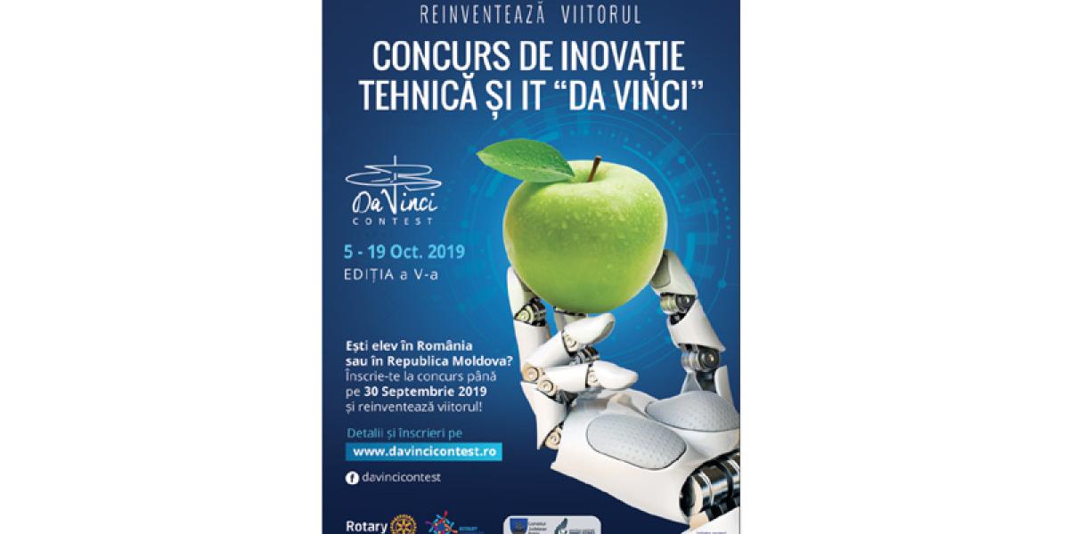 Concursul Naţional de Inovaţie Tehnică şi IT “DaVinci” aflat în acest an la cea de a V-a ediţie şi găzduit de Biblioteca Judeţeană “Panait Istrati” se organizează în scopul încurajării, promovării şi recunoaşterii valorilor în domeniul de inovare tehnică şi IT, cât şi pentru a da un impuls anteprenorial bazat pe inovare. Înscrierile elevilor din regiunea Dunărea de Jos pot fi făcute până pe 30 septembrie 2019, iar lucrările înscrise pentru concurs pot avea un autor sau o echipă.