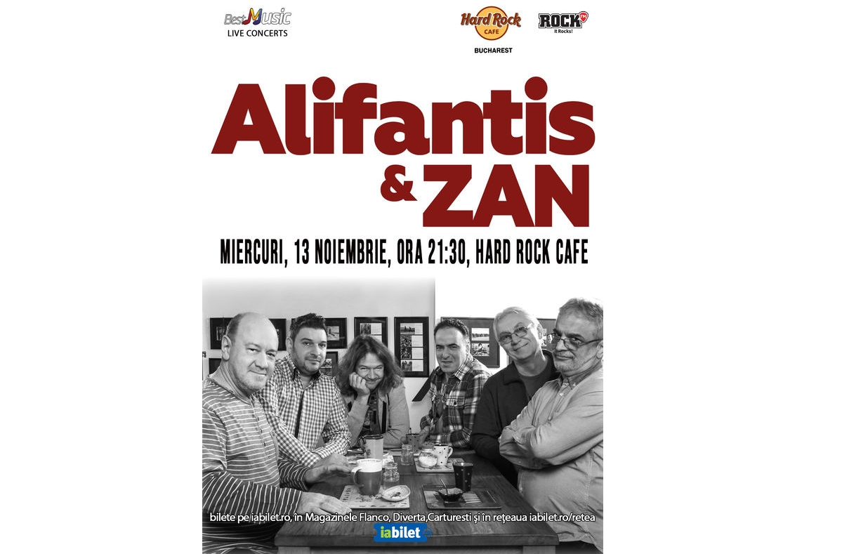 Nicu Alifantis și trupa ZAN revin la Hard Rock Cafe cu un concert ce va avea loc pe 13 noiembrie 2019, de la ora 21:30. Nicu Alifantis a debutat în muzică la 19 ani la Teatrul "Maria Filotti" din Brăila, orașul său natal, al cărui cetățean de onoare este din 2017, iar în cei peste 45 de ani de activitate a semnat muzică pentru 118 spectacole de teatru, în regia celor mai importanți regizori ai teatrului românesc. În paralel cu activitatea din teatru și-a desfășurat și activitatea concertistică, fiind autorul unora dintre cele mai emoționante cântece scrise pe versuri ale poeților români clasici și contemporani.