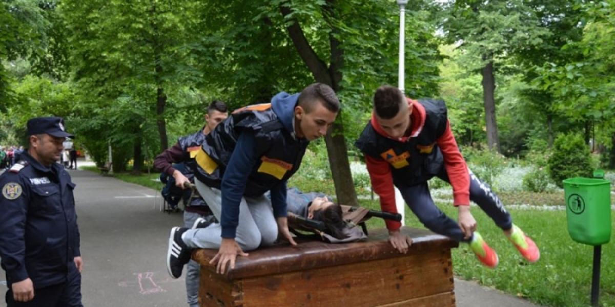 La Colegiul Economic "Ion Ghica" şi în Grădina Mare, tinerii competitori şi-au măsurat cunoştinţele, forţele şi îndemânarea în probe teoretice de verificare a noţiunilor acumulate, prin parcurgerea unei tematici specifice şi a două probe practice: transportul asistat al unui accidentat aşezat pe targă pe distanţa de 50 m şi deplasarea cu masca pe figură într-un raion cu obstacole şi contaminat.