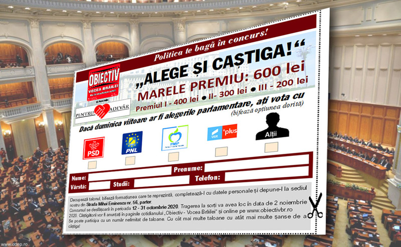 Au trecut ani buni de când cotidianul “Obiectiv – Vocea Brăilei” nu a mai organizat un concurs-sondaj. Asta deoarece interesul pentru astfel de iniţiative scăzuse substanţial. Iată că mai nou, de când criza sanitară a lovit substanţial buzunarele românilor, interesul pentru a participa la concursuri cu premii în bani a crescut. În acest context, după un prim concurs cu dedicaţie pentru pensionari, cotidianul nostru a încercat, ca pe vremuri, să ia un puls alegătorilor brăileni în perspectiva generalelor din 6 decembrie. Aşa cum am precizat la fiecare astfel de prelucrare a datelor, nu avem pretenţia unei cercetări sociologice profesioniste, dar, cu siguranţă, votul participanţilor la acest concurs arată o anumită orientare. Mai trebuie precizat că majoritatea participanţilor sunt pensionari cu studii medii, dar s-au înscris în concurs şi persoane cu 8 clase, dar şi cu studii superioare. De departe, clasamentul este condus de PSD cu 53% din preferinţe, urmat de PNL cu 17% şi USR-PLUS 4%. Surprinzător, 26% dintre repondenţi a bifat cu “Alţii”, semn că există multă nemulţumire cu privire la politicienii actuali, şi la partidele, respectiv alianţele de pe scena politică. Dintre votanţii PSD, 70% au studii medii, 15% studii superioare şi 78% vârste cuprinse între 60 – 85 ani. La PNL, 38% au studii medii, 24% studii superioare şi 69% au vârste între 63 şi 78 de ani. Foarte interesantă este structura votantului nemulţumit de actuala clasă politică. Cu o vârstă medie de 56 de ani, nemulţumitul are în egală măsură studii medii (45%) dar şi superioare (50%). În ceea ce priveşte USR-PLUS, la acest concurs au participat doar femei, cu vârsta medie de 59 de ani, 70% studii medii şi 30% superioare.