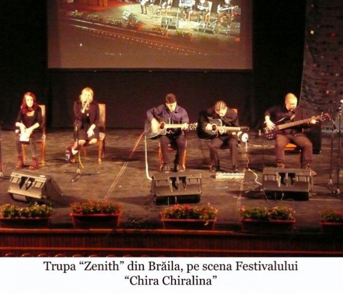 Muzica folk a cucerit, sâmbătă seara, sute de brăileni prezenţi în sala Casei Tineretului la cea de-a IX-a ediţie a Festivalului Naţional de Folk "Chira Chiralina". Rând pe rând au urcat în scenă cei 12 concurenţi calificaţi după preselecţia realizată de juriu, prezentarea fiecărui aspirant la trofeu fiind realizată de actorul Valentin Terente. Spectacolul a început cu grupul "Sonic Armonic" din Neamţ, şi a continuat cu Iulia Bădulescu, Florian Sprînceană din Dâmboviţa, grupul "Descântec" din Iaşi, Ionel Sebastian, Cosmin Mariciuc şi trupa "Icarus" din Botoşani, Elena Zaharia din Bucureşti, Sergiu Petrescu din Prahova, Laura Todică din Alba Iulia, Mihai Cristian din Tulcea. Seara de concurs s-a încheiat cu trupa "Zenith" din Brăila. Aceasta, formată din elevii: Valentin Popa, Sabina Mustiaţă, Tudor Jelescu, Paula Anastase şi Cristian Blagoci, a reuşit să încânte publicul şi să fie aplaudată cu multă însufleţire. Preşedintele juriului a fost Titus Andrei, iar membri: Ştefan Stănescu - realizator TVR, Clara Mărgineanu - revista "Flacăra", Alex Revenco - jurnalist, prof. Dorin Şipoş - cantautor.