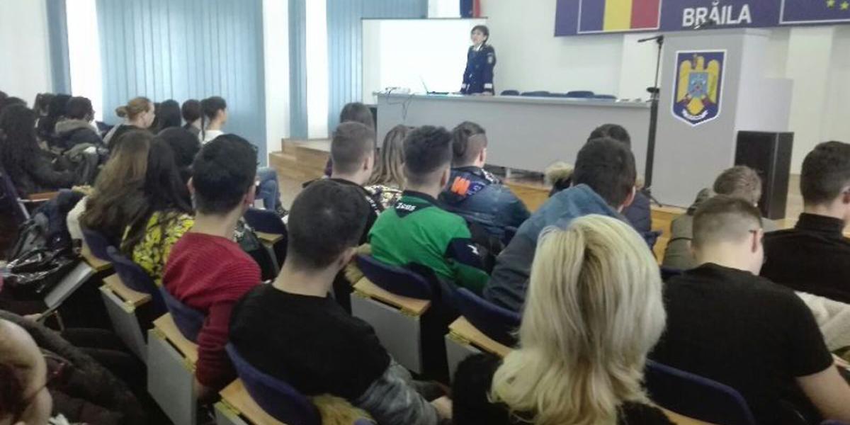 De temele abordate de poliţiştii Inspectoratului de Poliţie Judeţean Brăila au beneficiat elevii şcolilor gimnaziale „Fănuş Neagu”, „Ion Creangă” şi „Ion Băncilă”, dar şi ai liceelor: „D.P. Perpessicius”, „Panait Cerna”, „Gh. K. Constantinescu” şi Colegiului Tehnic „Panait Istrati”.
