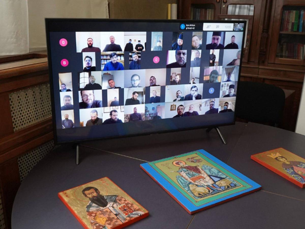 „Întrunirea online de astăzi, prezidată de Înaltpreasfinţitul Părinte Casian, Arhiepiscopul Dunării de Jos, s-a desfăşurat în Sala „Episcop Chesarie Păunescu“ a Centrului Eparhial şi a reunit în faţa dispozitivelor electronice membrii permanenţei Consiliului eparhial, cei opt protoierei, preoţi de la parohiile din cele două judeţe ale Eparhiei şi voluntari din cadrul Facultăţii de Istorie, Filosofie şi Teologie - Secţia Asistenţă Socială din cadrul Universităţii „Dunărea de Jos”. În deschiderea evenimentului, chiriarhul Dunării de Jos şi toţi participanţii la eveniment au cântat colindul „O, ce veste minunată!”, ne-a precizat părintele consilier Rareș Bucur, din cadrul Eparhiei.