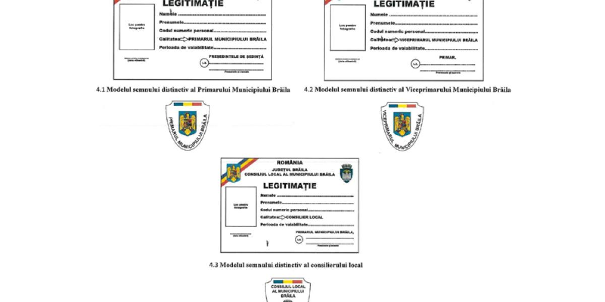 Primarul Municipiului Brăila și membrii Consiliului Local Municipal aleși pe funcții în cadrul Alegerilor Locale din luna iunie a anului trecut au mai bifat, recent, o etapă administrativă ce le atestă calitatea dobândită la vremea respectivă. Pe scurt, în ședința ordinară din 16 aprilie a CLM Brăila, a fost aprobat modelul legitimației pentru aleșii locali ai Municipiului Brăila, precum și modelul semnului distinctiv al calității acestora. Mai exact, s-a dat undă verde pentru modelul legitimației de Primar al Municipiului Brăila, cel pentru viceprimari, precum și cel pentru consilierii locali municipali. De asemenea, în ceea ce privește ”semnul distinctiv”, este vorba despre insigne.