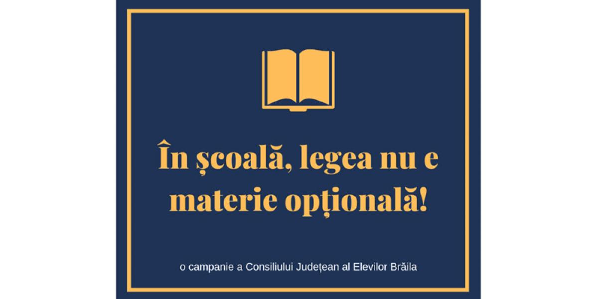 Consiliul Judeţean al Elevilor (CJE) Brăila, singura structură reprezentativă a elevilor din municipiul şi judeţul nostru, pare mai hotărât ca niciodată să lupte pentru respectarea drepturilor elevilor. Recent, CJE a lansat campania “În şcoală, legea nu e materie opţională!”, prin care va începe să verifice