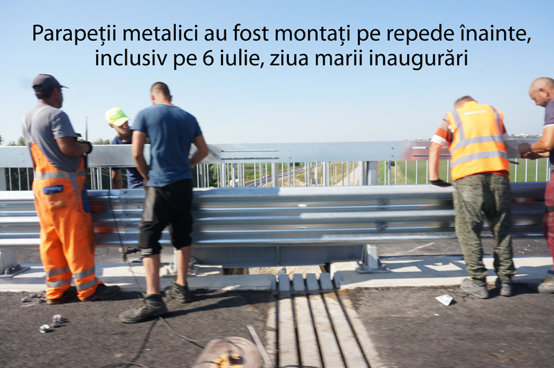 Ce nu spun reprezentanții CNAIR este că respectivii parapeți metalici au fost montați, pe repede înainte, în zilele premergătoare marii inaugurări oficiale, făcute, după cum se știe, în data de 6 iulie. La eveniment au participat oficialități ale statului în frunte cu președintele Iohanis și premierul Marcel Ciolacu, care în discursurile oficiale și-au exprimat bucuria că podul de la Brăila poate fi deschis, în sfârșit, traficului rutier, fiind cea mai mare lucrare de infrastructură din ultimele decenii. În ciuda inaugurării oficiale făcute pe 6 iulie, s-a menționat că de fapt lucrarea nu poate fi recepționată, pentru că încă mai e de lucru, până la sfârșitul anului în curs, la drumul de legătură spre Jijila, județul Tulcea, dar și la o porțiune de drum care asigură legătura cu Șoseaua de Centură a Brăilei. În plus, s-a specificat că mai e de lucru și la podul propriu-zis, deoarece trebuie demontate macaralele folosite la construcția turnurilor - acesta fiind motivul pentru care circulația auto nu este deschisă pe timpul nopții decât sâmbăta și duminica. Nu s-a spus, însă, nimic despre faptul că ar mai fi de lucru și la strângerea tuturor șuruburilor folosiți la parapeții metalici...