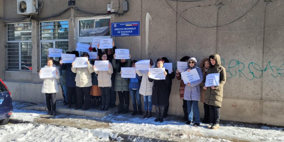 Inițiat, în mod spontan, pe 23 noiembrie, protestul salariaților Direcției Regionale de Statistică Brăila (DRS) continuă pe perioadă nedeterminată, „până la soluționarea revendicărilor”. Protestul se desfășoară zilnic, între orele 11.00 și 12.00, însă protestatarii amenință că, în caz că revendicările lor nu vor fi soluționate, vor întrerupe activitatea.