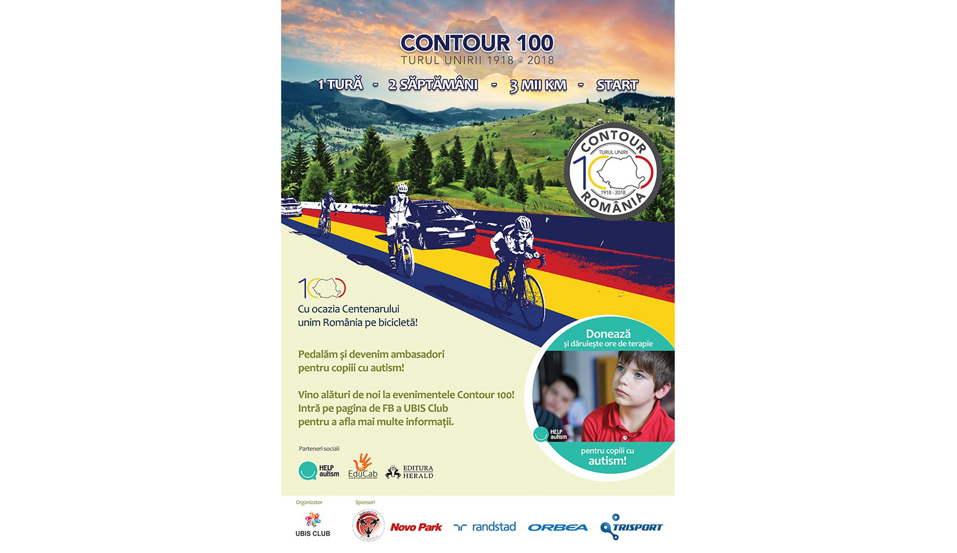 Inițiativa „Contour 100” aparține UBIS Club și este organizată în parteneriat cu Helpautism, EduCaB şi Editura Herald, cu susținerea Novo Park, a sindicatului U.P.A., Randstad, Orbea și Trisport.