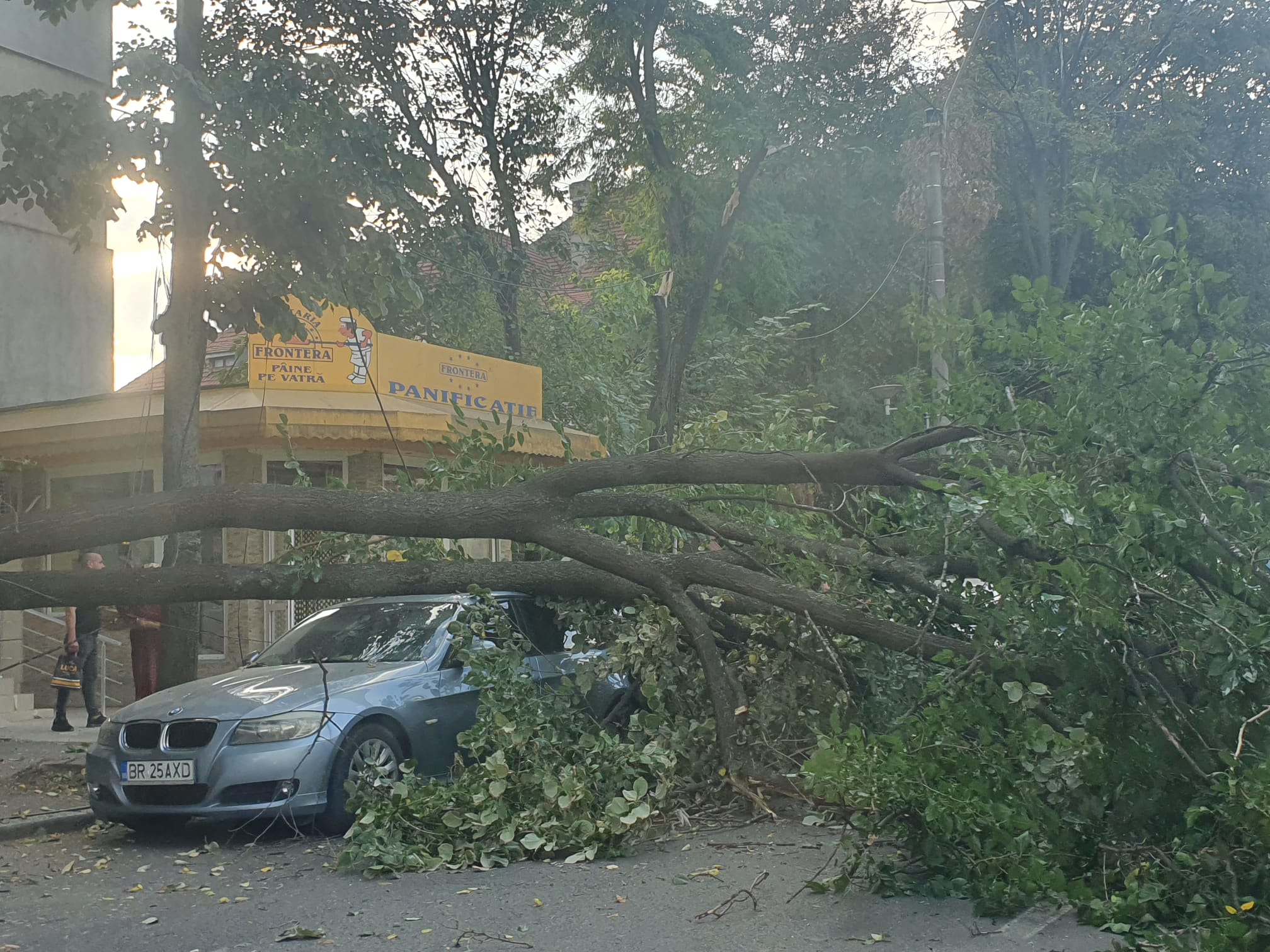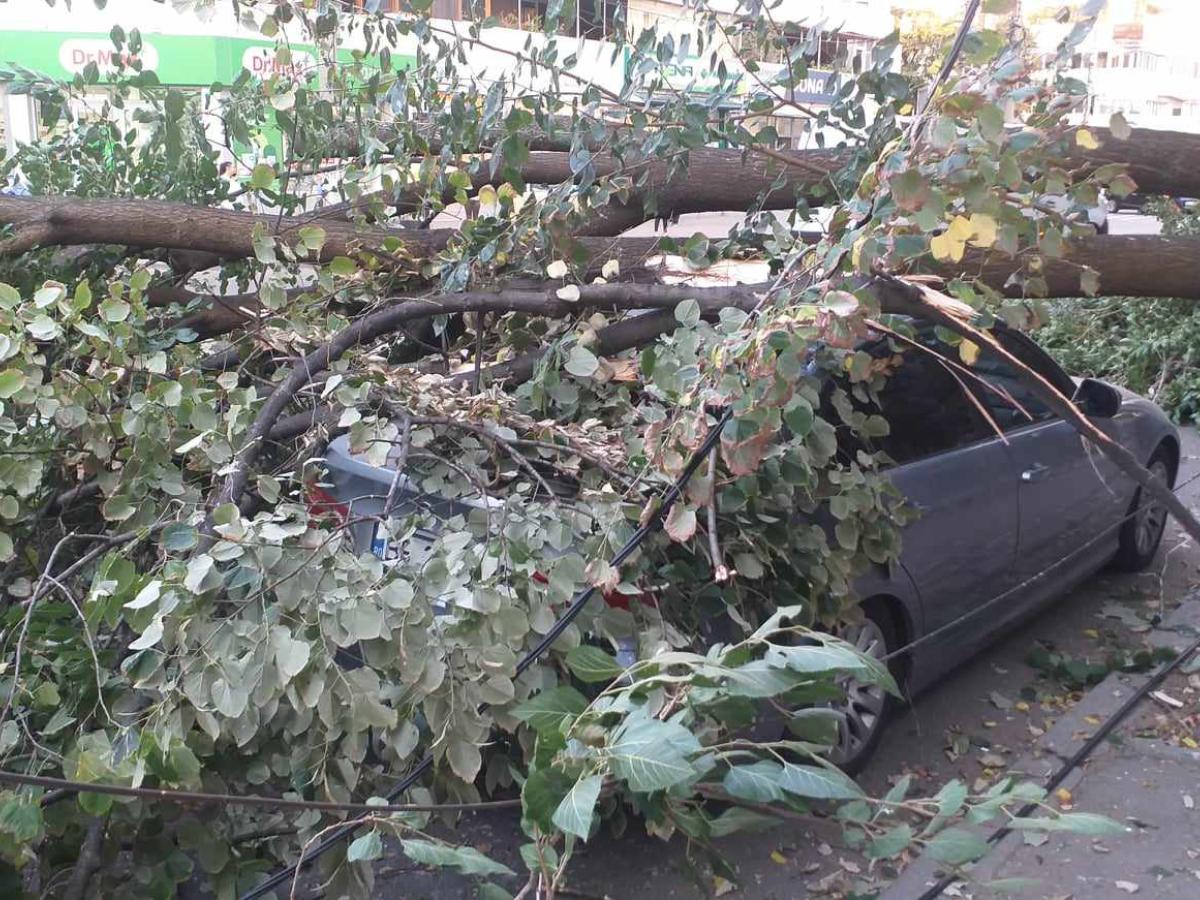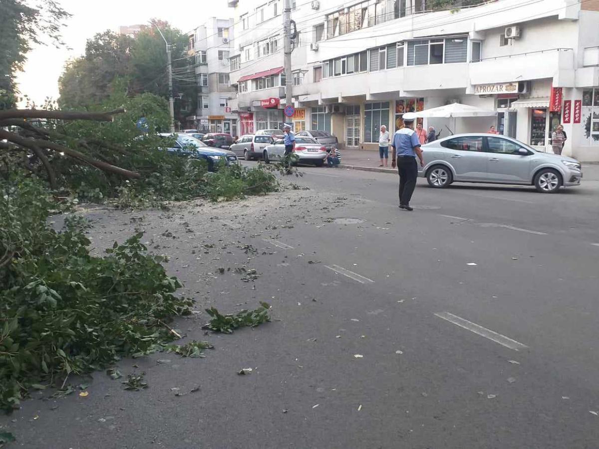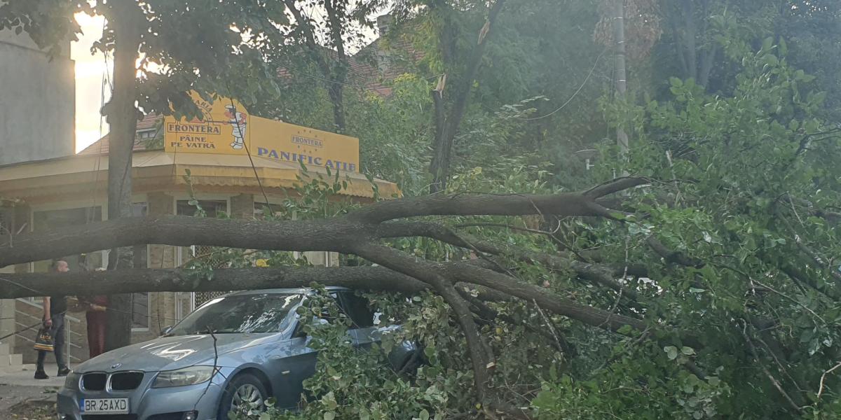 Un copac de mari dimensiuni s-a prăbușit, pe Str. Gral Eremia Grigorescu, prinzând sub el o mașină parcată și acoperind mare parte din carosabil. Traficul auto a fost blocat temporar pe sensul de mers spre Bdul. Dorobanților, până la degajarea carosabilului. Locul incindentului este foarte aproape de sediul Inspectoratului pentru Situații de Urgență, astfel că era de așteptat ca intervenția pompierilor să nu se lase foarte mult așteptată.