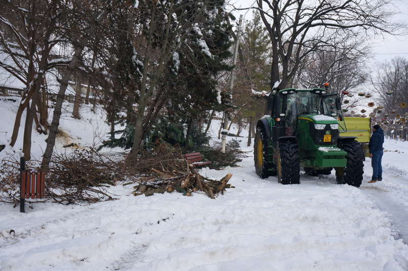 Mulți copaci de pe faleza Dunării, dar și din celelalte parcuri din municipiu - Monument, Grădina Mare - au cedat sub greutatea zăpezii și fie s-au rupt cu totul, fie și-au pierdut mai multe crengi. Echipele ”Seroplant” au intervenit în ultimele zile pentru îndepărtarea și mărunțirea crengilor rupte, care au fost încărcate în remorci și transportate la un depozit. Materialul lemnos rezultat în urma acestor acțiuni va fi împărțit persoanelor care beneficiază de ajutoare sociale, după cum ne-au explicat angajații ”Seroplant” aflați, ieri, pe teren.