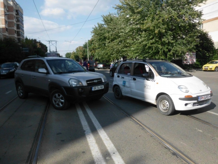 Accident pe Dorobanţi. O şoferiţă care se deplasa pe bulevard, dinspre str. Gării şi care intenţiona să vireze la stânga a lovit lateral un taxi care venea din spate, pe linia de tramvai. În urma coliziunii, cei doi copii care se aflau pe bancheta din spate a taxiului au ajuns la spital. Poliţiştii fac în acest moment cercetare la faţa locului. Circulaţia tramvaielor este întreruptă.