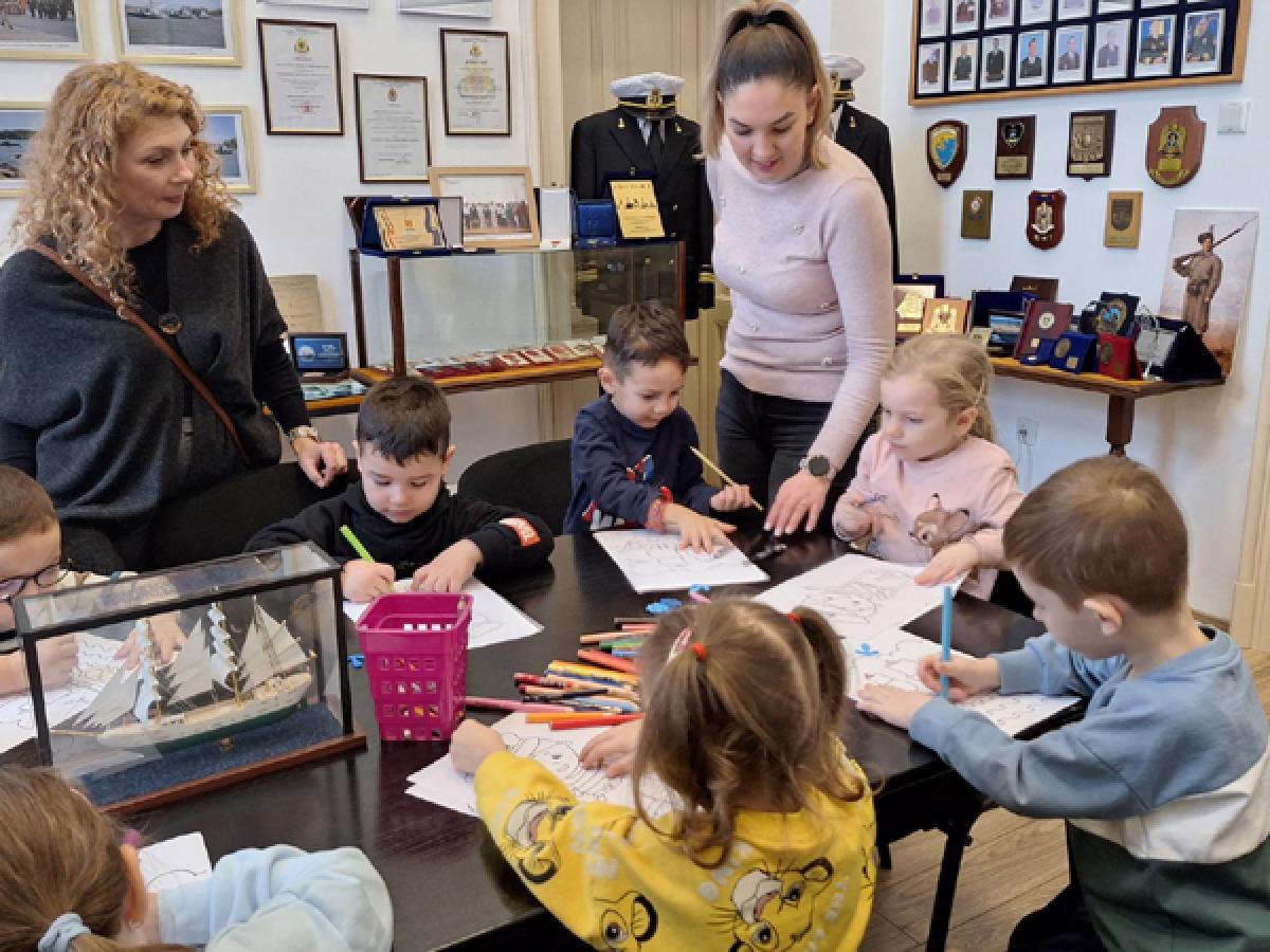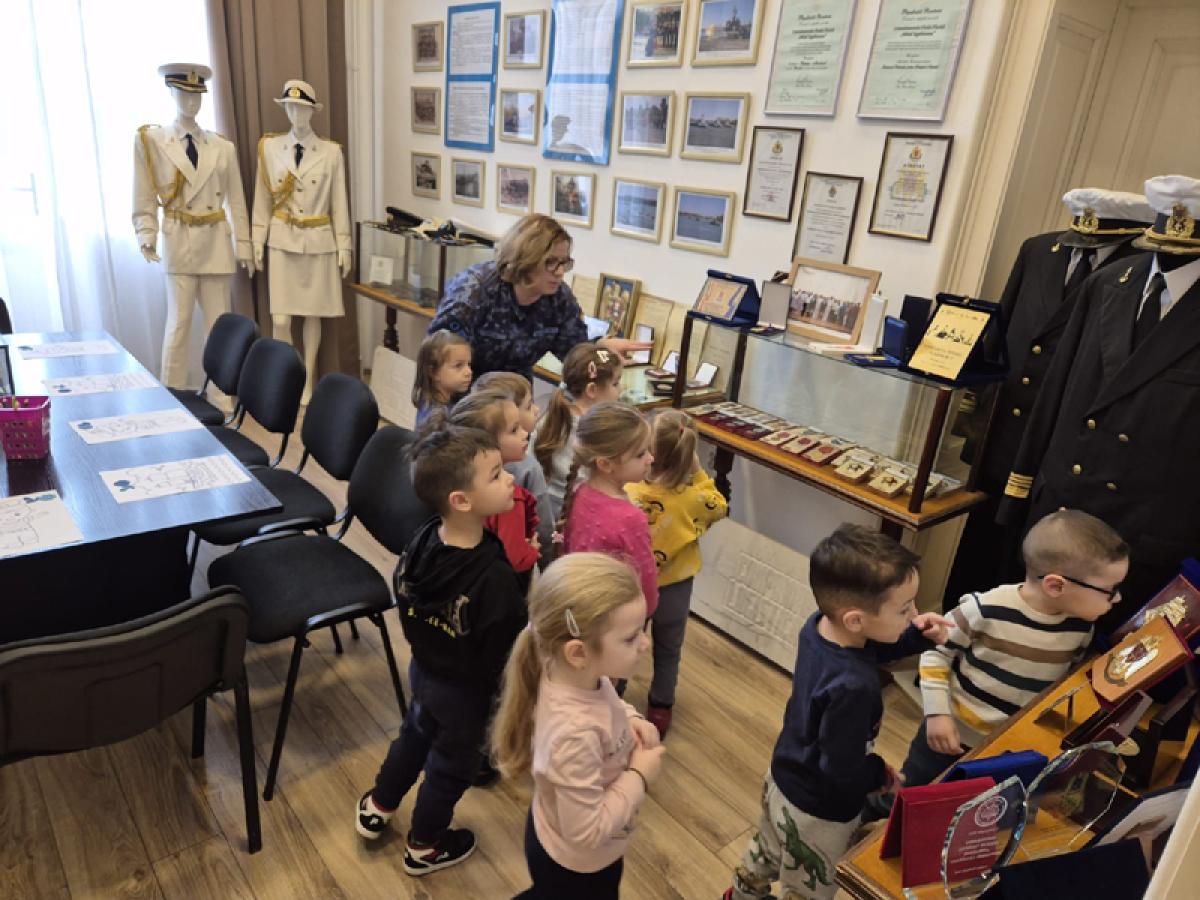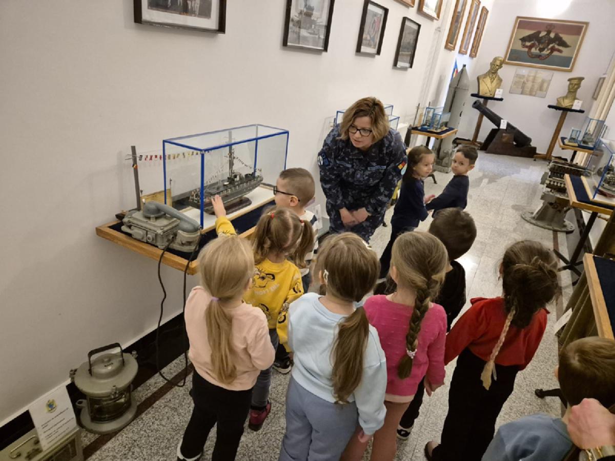 Entuziasmați, copiii au admirat machetele de nave expuse în Sala de Tradiții, fiecare dintre acestea având o poveste aparte, pe care au aflat-o de la gazda lor. Ei au descoperit, pentru prima dată, obiecte și aparatură folosite pe nave și au învățat cum lucrează marinarii pentru a menține siguranța pe apă. Totodată, cei mici au fost fascinați și de celelalte obiecte expuse, de la arme și decorații și până la uniforme de paradă. Nu e de mirare că, după ce au aflat cum stau lucrurile, mulți dintre ei au spus că, atunci când vor fi mari, vor să devină marinari, să navigheze pe ape și să descopere lumea.
