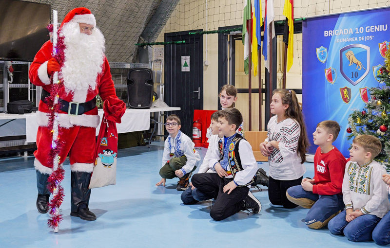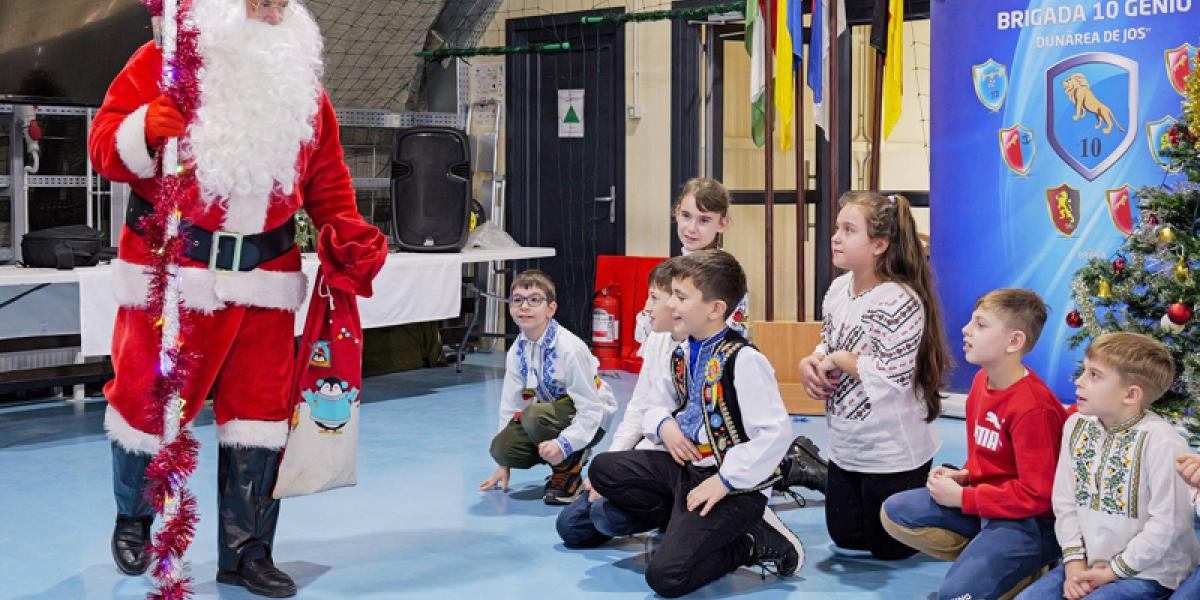 După ce oaspeții i-au colindat pe militari, prezentându-le un scurt program de colinde, „spiridușii oficiali ai Moșului”, împreună cu însuși Moș Crăciun - cel sosit „de peste mări și țări” - le-au împărțit micuților daruri, dar și multă voie bună. După o scurtă sesiune foto, copiii cadrelor militare, împreună cu elevii de la „Ion Băncilă”, au părăsit unitatea cu zâmbete pe chipuri și daruri multe, fericiți de întâlnirea cu Moș Crăciun.