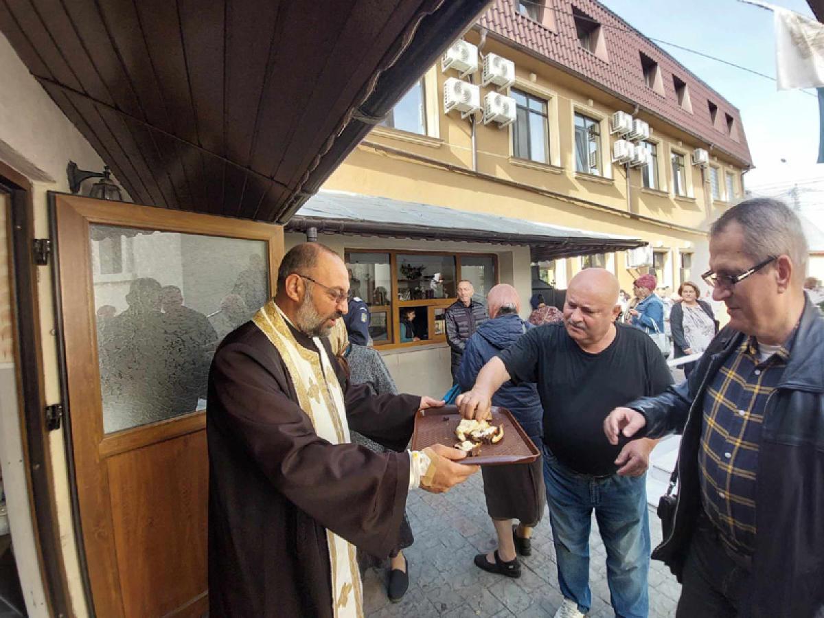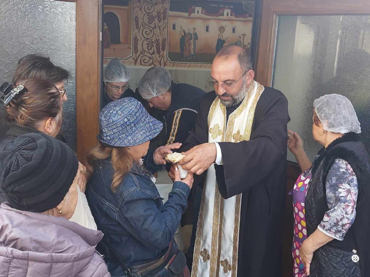Imediat după Sfânta Liturghie, părintele Daniel Bogdan le-a oferit tuturor celor prezenți la slujba de hram delicioasele sărmăluțe, pregătite de cea mai bună bucătăreasă a parohiei, doamna Pina, colivă și colaci, dar și cuvinte de îmbărbătare.