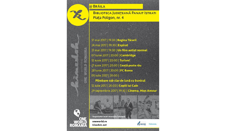 Miercuri, 12 iulie 2017, de la ora 20:00, la Biblioteca Judeţeană “Panait Istrati” va fi proiectat filmul documentar “Copiii lui Cain”. Un film în limba maghiară, subtitrat în limba română despre trei bărbaţi care au comis crime în copilărie. Toţi trei şi-au petrecut întreaga tinereţe în centrul de detenţie juvenilă Tokol în anii 1980, unde au fost pentru prima dată filmaţi, confesându-şi crimele. Înregistrări tulburătoare din arhivă îi arată mărturisind detalii despre crimele săvârşite şi făcându-şi planuri de viitor, dar materialul a fost interzis. Pal şi-a ucis tatăl, Zsolt şi-a ucis un prieten, pe când Gabor şi-a omorât profesorul. 30 de ani mai târziu, regizorul îi caută şi descoperă secrete nespuse şi o ţară pe care nu a cunoscut-o niciodată. Destin, păcat şi moştenire – văzute prin ochii “copiilor lui Cain”. Documentarul îi urmăreşte încercând să se reintegreze în societate, dar aceste trei poveşti singulare sfârşesc prin a trasa conturul unui stat care oscilează între două ere, pe fondul unui context politico-social actual zbuciumat.