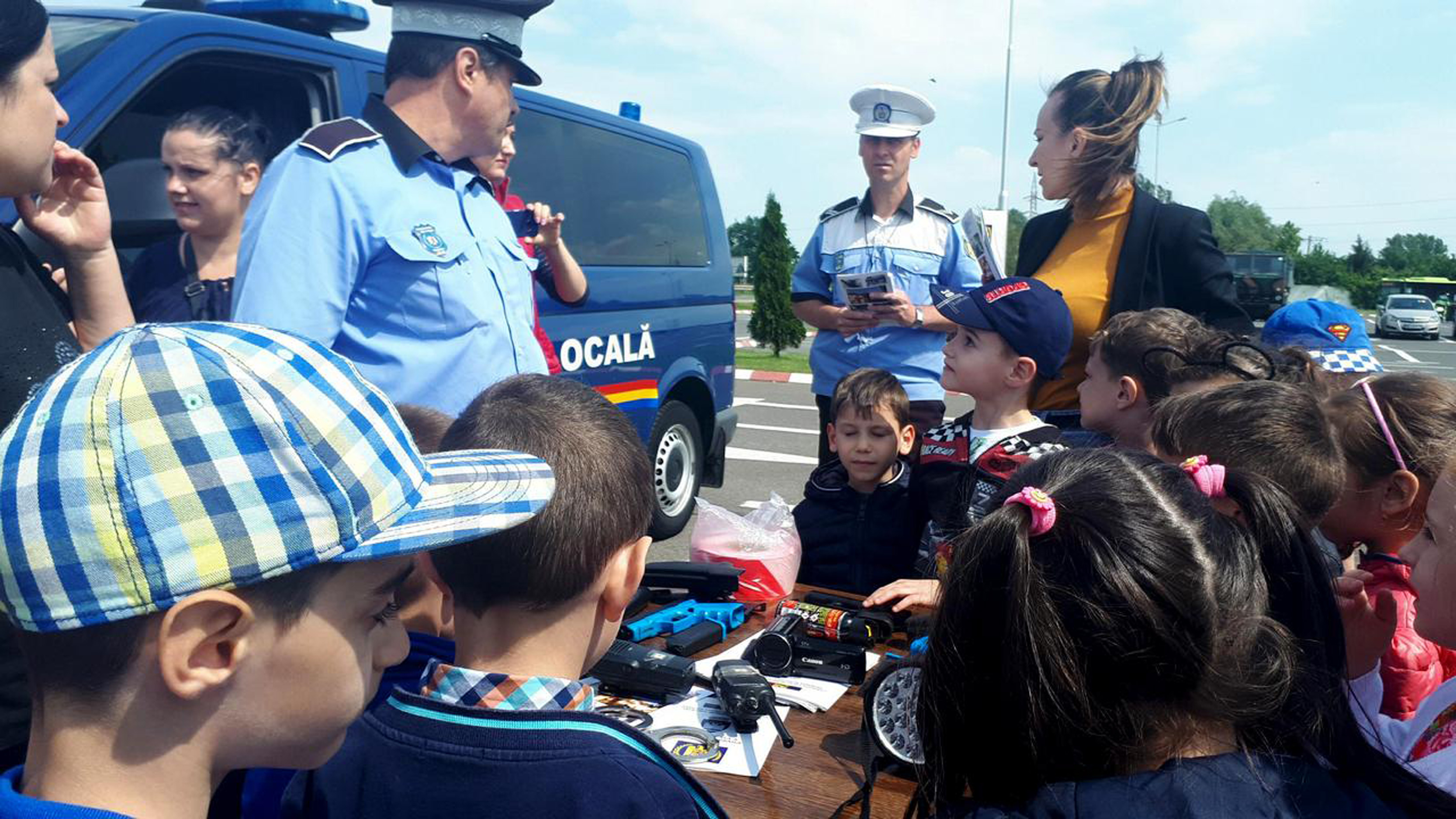 O acţiune interesantă au avut cei de la Analiza şi Prevenirea Criminalităţii (Serviciul Rutier), pentru că s-au aliat cu copiii în “educarea” părinţilor. Pentru că foarte multe accidente rutiere sunt cauzate de pietoni care traversează strada prin locuri nepermise, poliţiştii şi cei mici au pus la cale un “plan” pentru a salva vieţile părinţilor. Au fost împărţite pliante adulţilor prezenţi la activitate, cu informaţii despre cum se traversează corect strada, dar şi despre sancţiunile pe care le riscă în caz că greşesc. Cu mesajul “Tu pe unde traversezi? Învăţăm de la copii!”, adulţilor li s-a reamintit faptul că “Traversarea drumului public de către pietoni se face perpendicular pe axa acestuia, numai prin locurile special amenajate şi semnalizate corespunzător, iar în lipsa acestora, în localităţi, pe la colţul străzii, numai după ce s-au asigurat că o pot face fără pericol pentru ei şi pentru ceilalţi participanţi la trafic”. În plus, oamenii legii au menţionat, în pliant, că pietonii suprinşi şi accidentaţi ca urmare a traversării prin locuri nepermise ori pe culoarea roşie a semaforului poartă întreaga răspundere a accidentării lor, dacă s-a stabilit deja că şoferul nu a avut nicio vină. Cine nu respectă regulile de traversare a străzii riscă amendă echivalentă cu 20-30% din salariul minim brut pe economie.