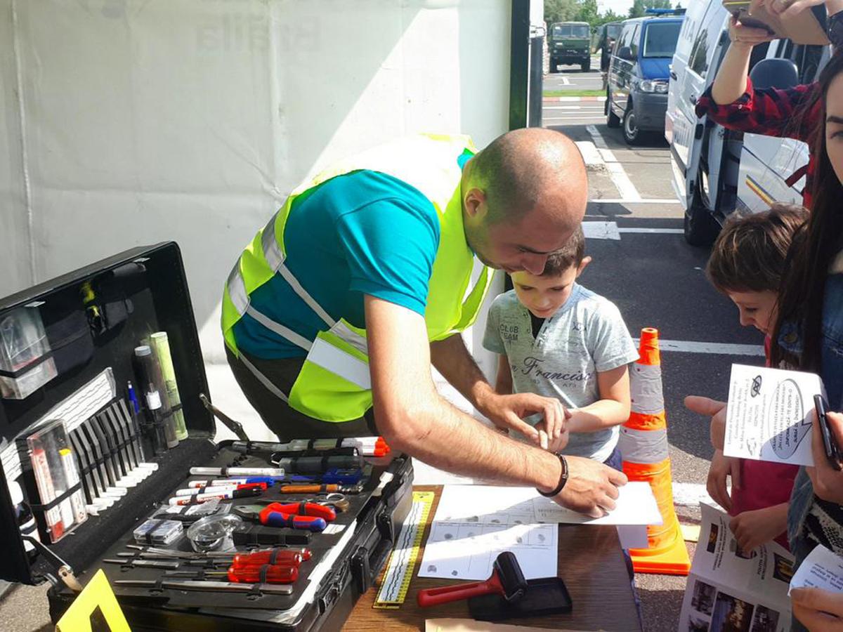 Apoi, copiii s-au oprit direct în autospecialele structurilor prezente la activitate. Şi-au imaginat că poartă uniforma statului şi că pleacă în misiune, motiv pentru care claxonau şi încercau “sirenele”. O altă atracţie a fost şi laboratorul de criminalistică, unde poliţiştii le-au explicat celor mici cum reuşesc să strângă probe, la un furt spre exemplu, şi cum îl identifică pe hoţ.